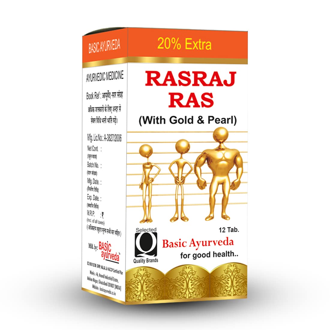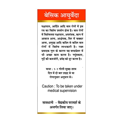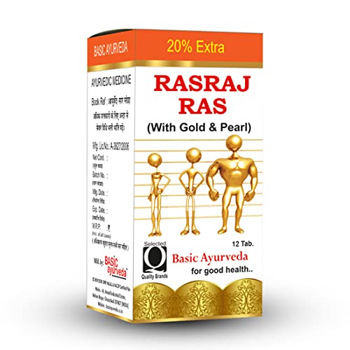Basic Ayurveda Rasraj Ras with Gold & Pearl 12 Tablets | Ayurvedic Supplement for Vata Disorders & Strength