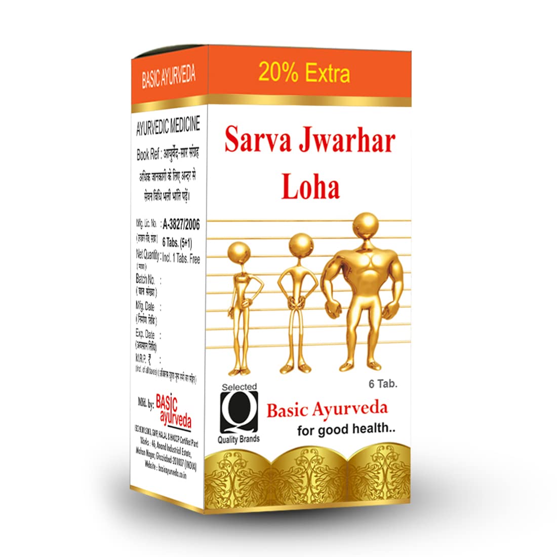 BASIC AYURVEDA Sarva Jwarhar Loha With Gold 6 Tablets Pack Of 3 | Certified Organic 100% Natural & Pure Tablet | Ayurvedic Supplements For Good Health | A Powerful Blend Of Natural Ingredients Extra Strength Formula