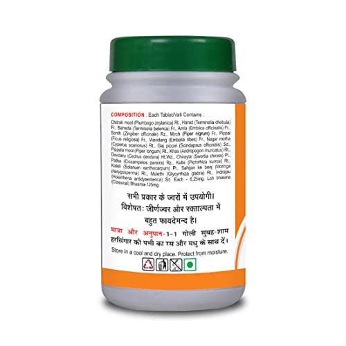 • Contains of Sarvajwarhar Lauh are Chitraka Haritaki Vibhitaki Shunti Maricha Pippali Vidanga Musta Shreyasi Pippalimula Ushira Devadaru Kiratatikta Hrivera Katuki Kantakari Moringa Yasti Kutja Loh Bhasma.