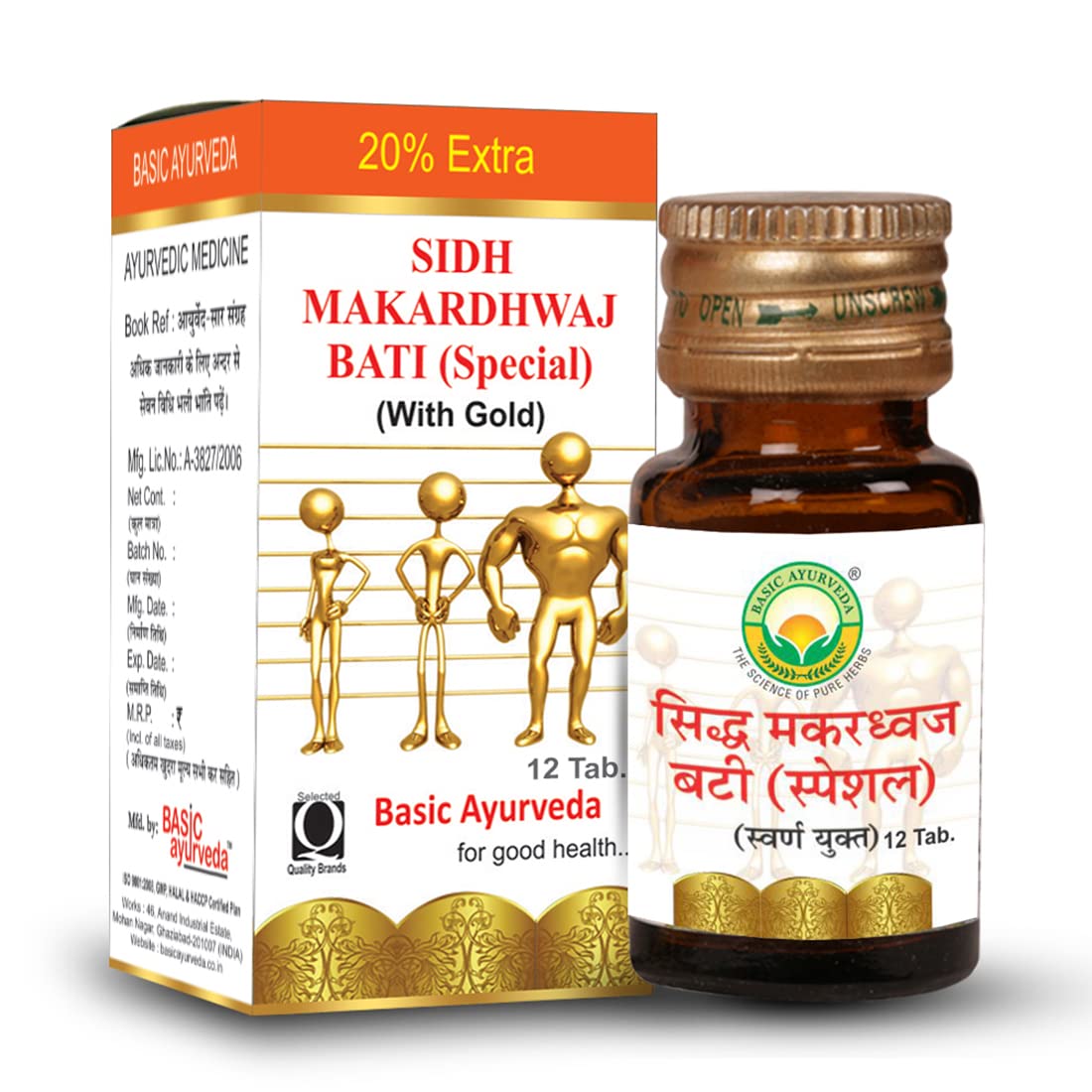 BASIC AYURVEDA Sidh Makardhwaj Bati (Special) With Gold 12 Tablets Pack Of 2 |