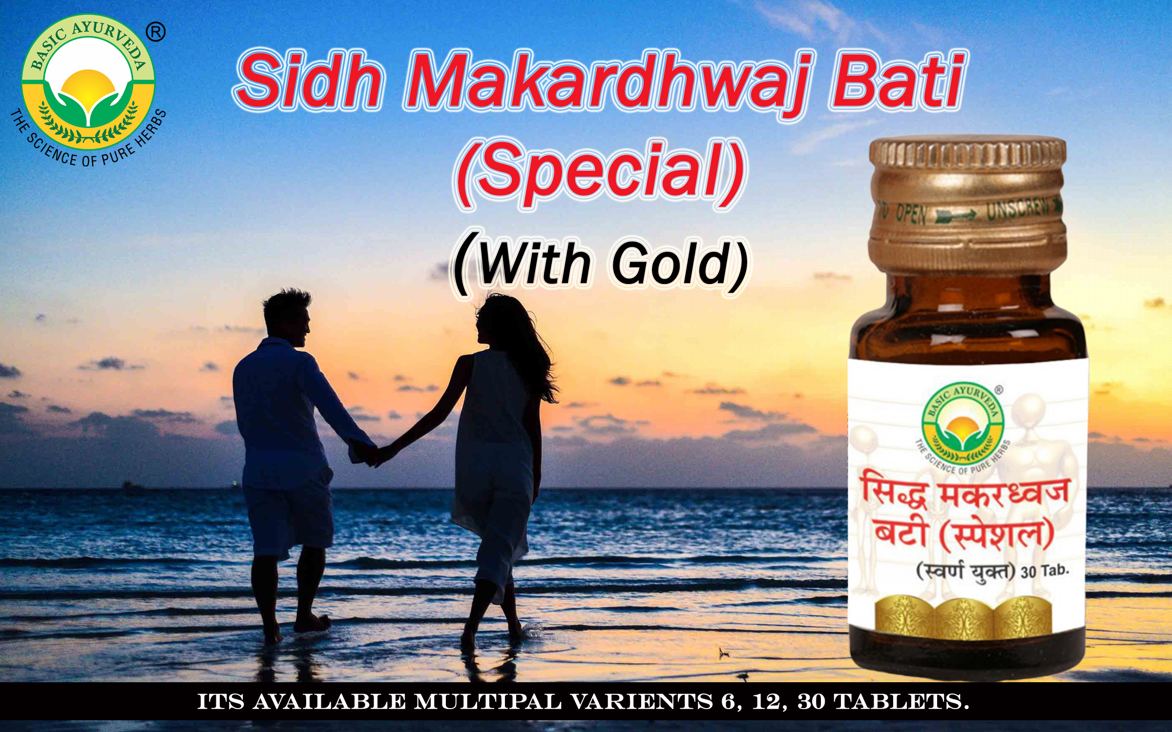 • Sidh Makardhwaj Bati Special is an ayurvedic herbal formulation that comes in tablet form that help in male related problems and skin health.