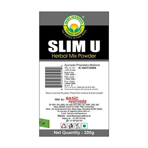 • Basic Ayurveda Slim-U herbal mix ayurvedic powder is induced due to many factors like spending much time seated lifestyle and irregular eating habits.