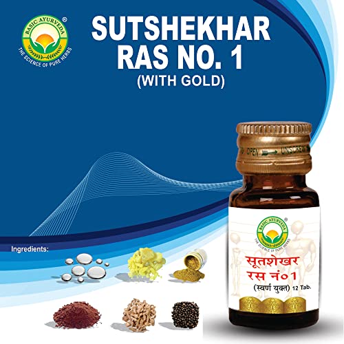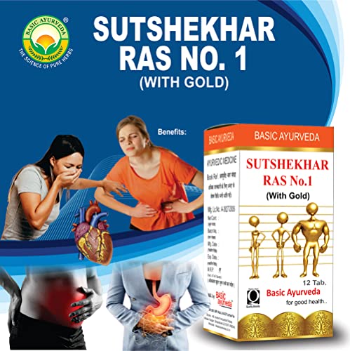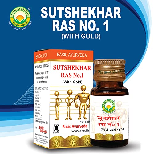 BASIC AYURVEDA Sutshekhar Ras No.1 With Gold 12 Tablets | Ayurvedic Supplements For Stomach Health | A Powerful Blend Of Natural Ingredients Extra Strength Formula