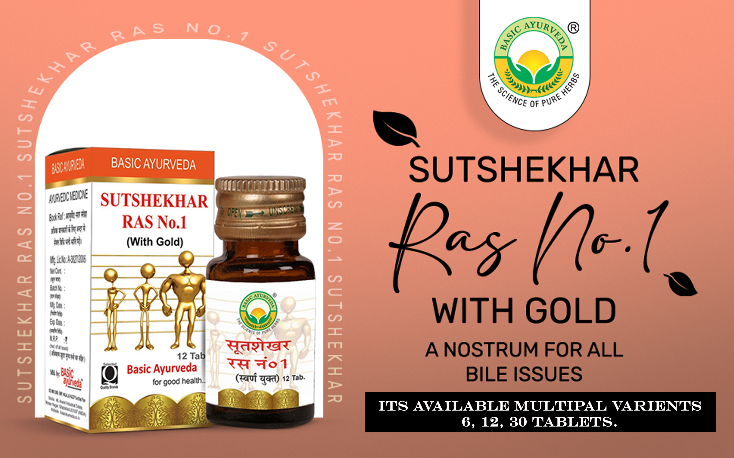 BASIC AYURVEDA Sutshekhar Ras No.1 With Gold 6 Tablets | Ayurvedic Supplements For Stomach Health | A Powerful Blend Of Natural Ingredients Extra Strength Formula