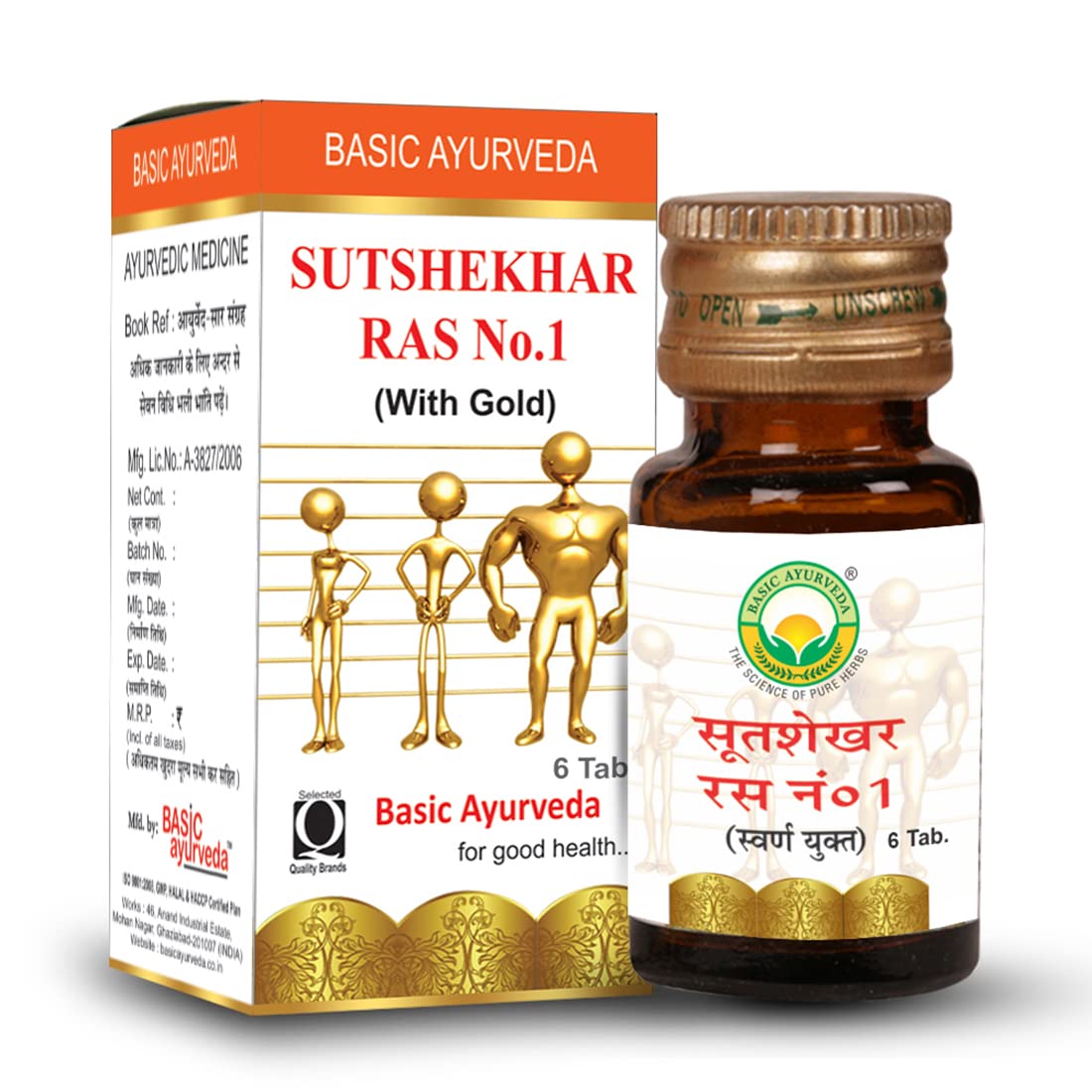BASIC AYURVEDA Sutshekhar Ras No.1 With Gold 6 Tablets Pack Of 3 | Ayurvedic Supplements For Stomach Health | A Powerful Blend Of Natural Ingredients Extra Strength Formula