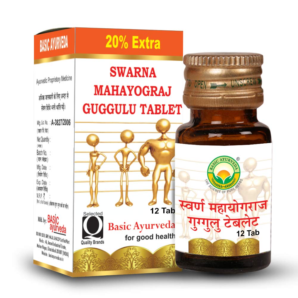 Basic Ayurveda's Mahayog Raj Guggulu is an ayurvedic herb. Helpful for vata roga. Basic Ayurveda Swarna Maha Yograj Guggulu (12 Tablet) Basic Ayurveda's Mahayog Raj Guggulu is an ayurvedic herb. Helpful for vata roga.