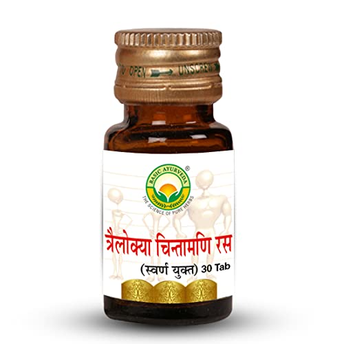 Basic Ayurveda Trailokya Chintamani Ras With Gold – 30 Tablets x 2 Packs | Premium Ayurvedic Gold-Based Tonic for Brain, Heart & Nerve Strength | Rejuvenating Herbal Mineral Supplement