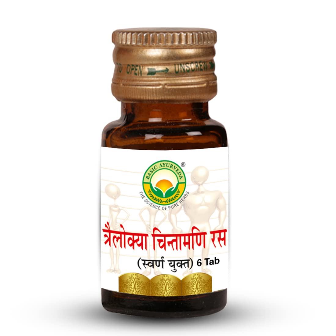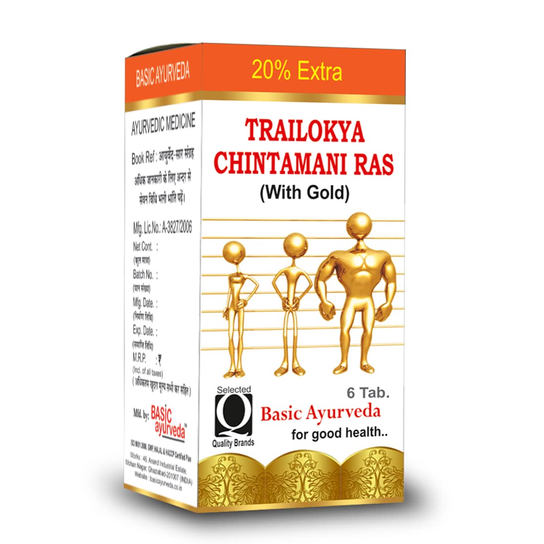 BASIC AYURVEDA Trailokya Chintamani Ras with Gold 6 Tablets Pack of 3 |