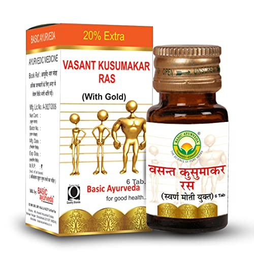 Basic Ayurveda Vasant Kusumakar Ras with Gold 6 Tablets | Ayurvedic Supplement for Diabetes & Rejuvenation