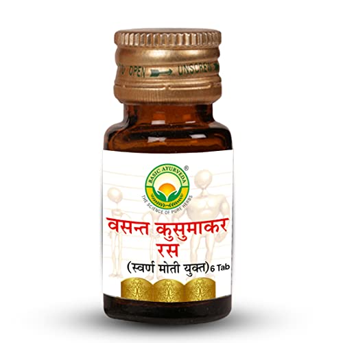 Basic Ayurveda Vasant Kusumakar Ras With Gold 6 Tablets x 2 Packs | Ayurvedic Supplement for Diabetes, Nerve Strength & Vitality | Enriched with Gold & Rare Medicinal Herbs