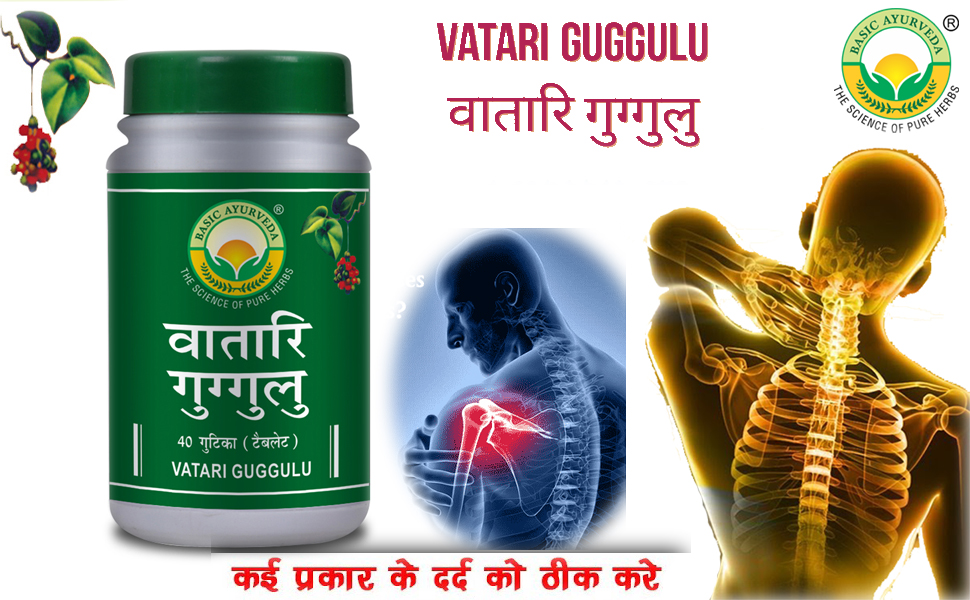 • Vatari Guggulu Tablet is used in the Ayurvedic formulation of hip pain joint pain and burning sensation. It can pacify Vata and Kaha doshas. Hence it is used in the problem of Vata.