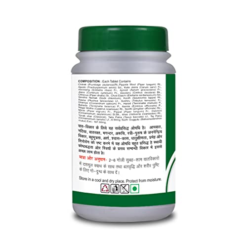 • It is a well-known tablet for Vata and maintains healthy digestion constipation bloating indigestion metabolism eye inflammation and swelling.