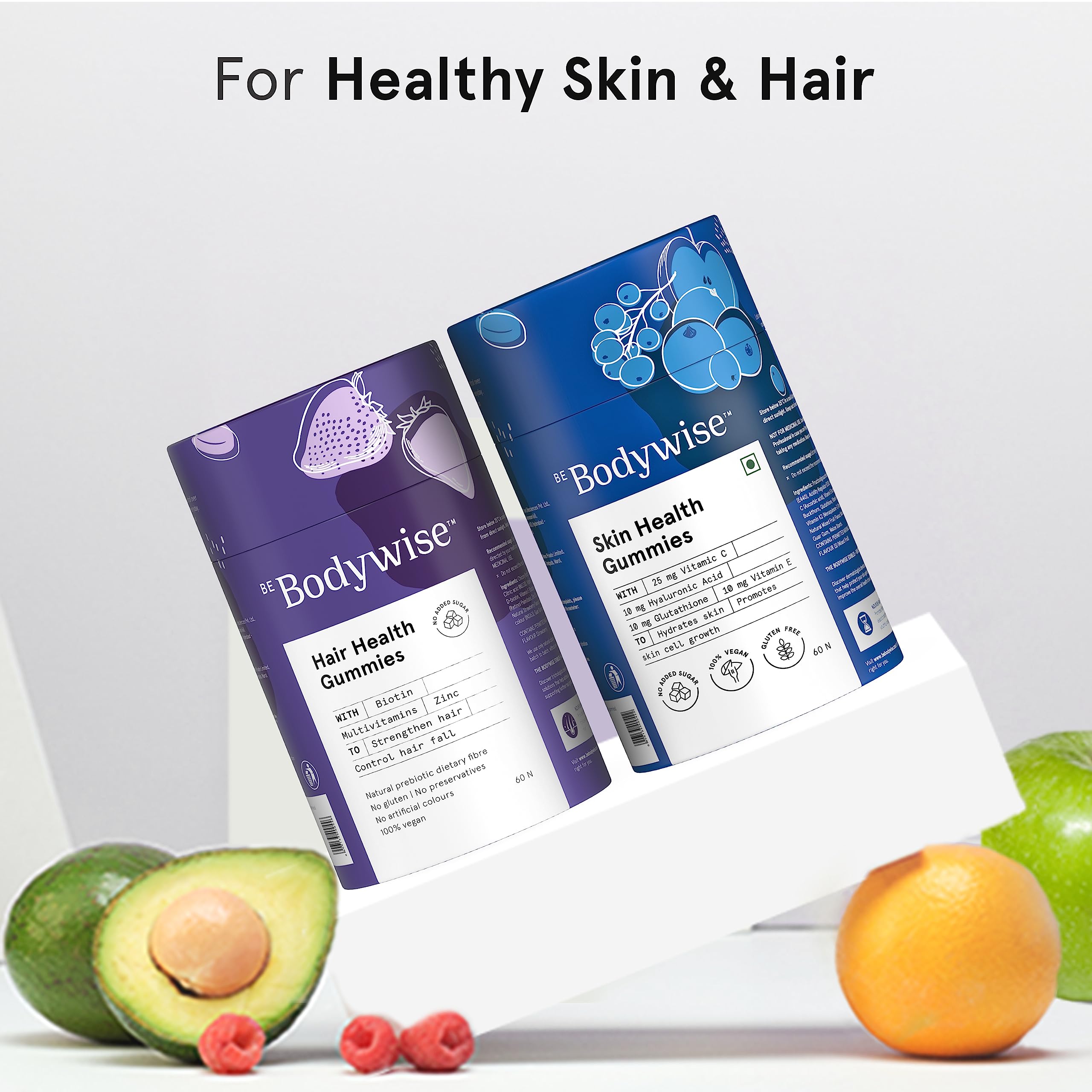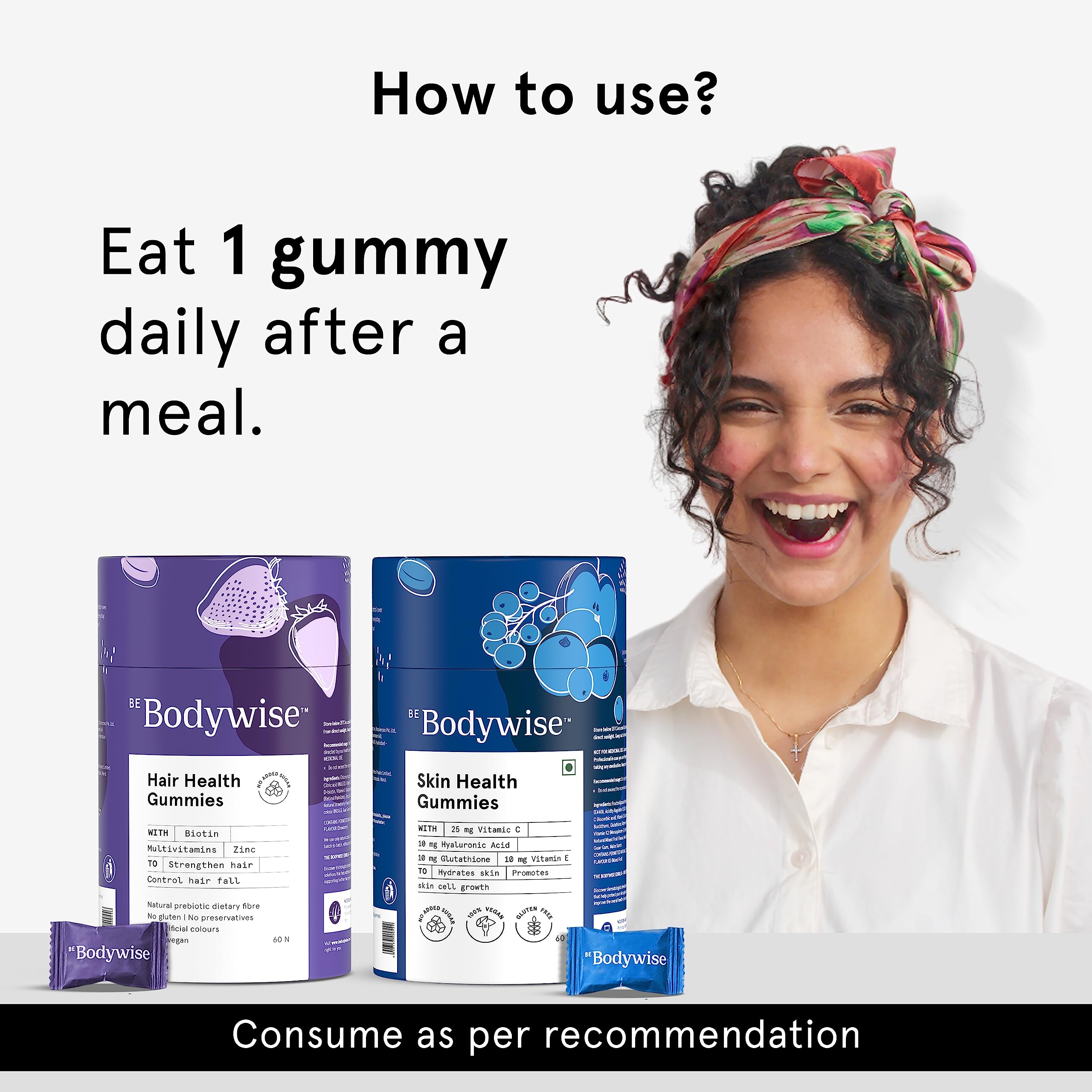 Be Bodywise Gummies for Skin & Hair | Combo of 120 Gummies | Skin Gummies with Hyaluronic Acid Vitamin C & E & glutathione | Biotin Gummies | Biotin Supplements for Stronger Hair | No Added Sugar