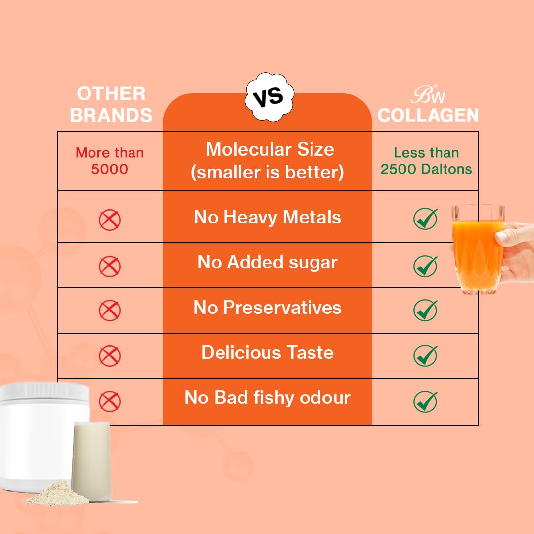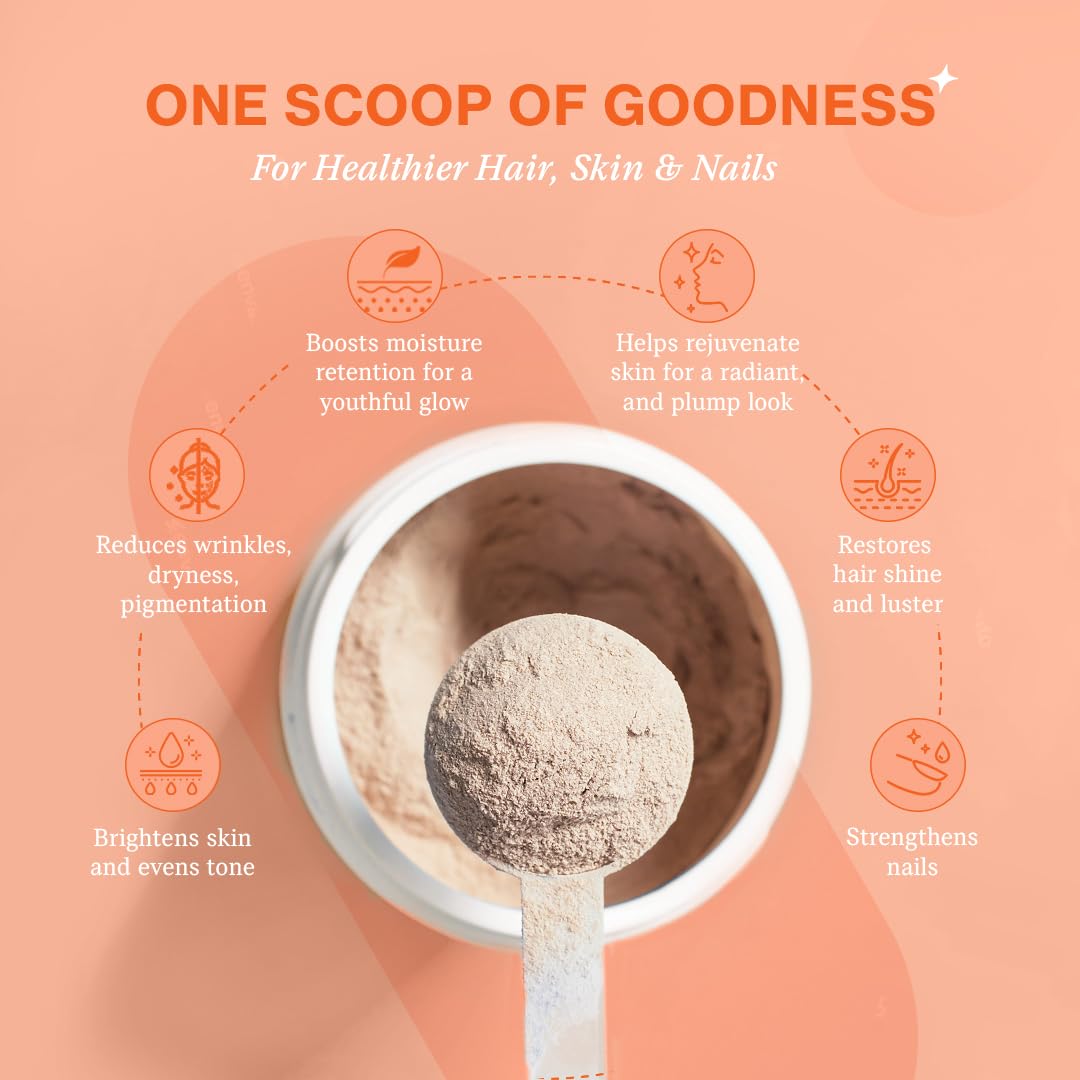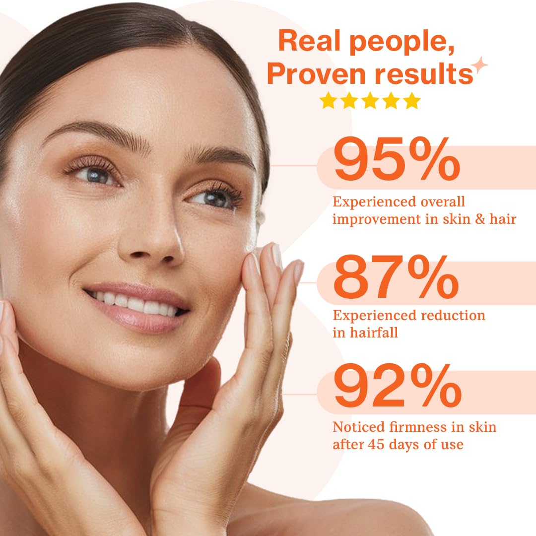 Clinically tested 100% pure collagen proteins for healthier skin hair and nails.
