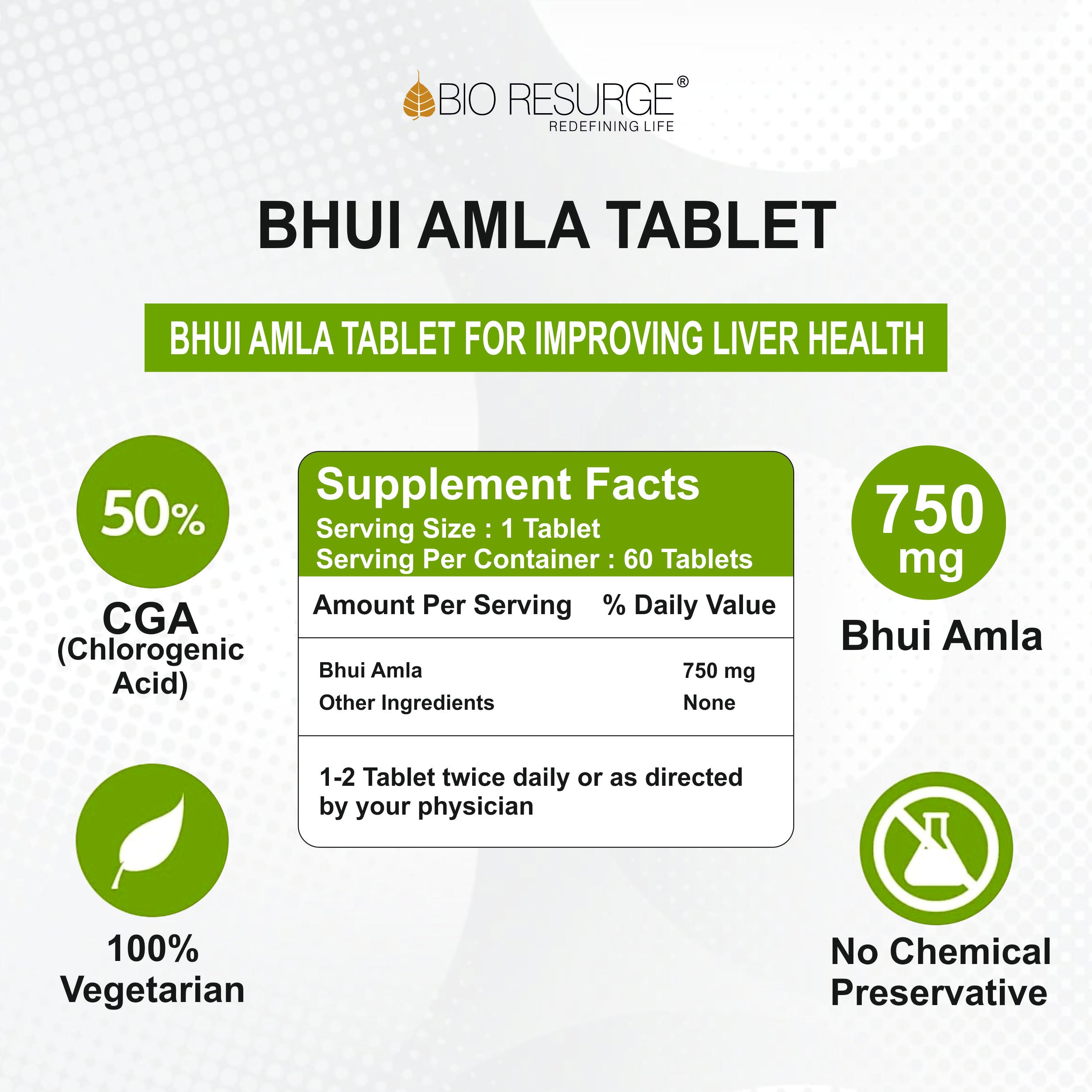 Bio Resurge Brahmi Tabs. - 750mg (60 Tabs.)