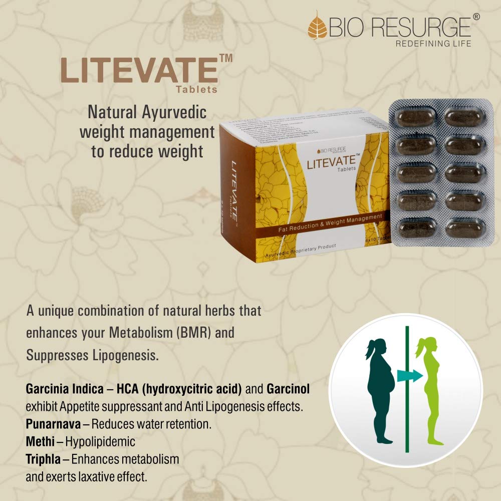 Bio Resurge Life Litevate Tablets | Ayurvedic Weight Management Supplement | Boosts Metabolism | Controls Appetite: 60 Talets(Pack of 1)