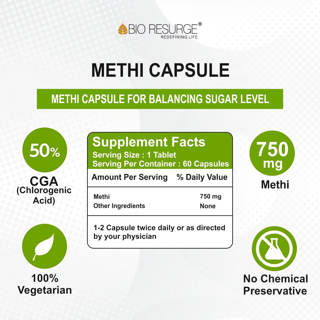 Bio Resurge Methi Fenugreek Manage Sugar Digestion Immunity Extract 60 Capsules 750 mg