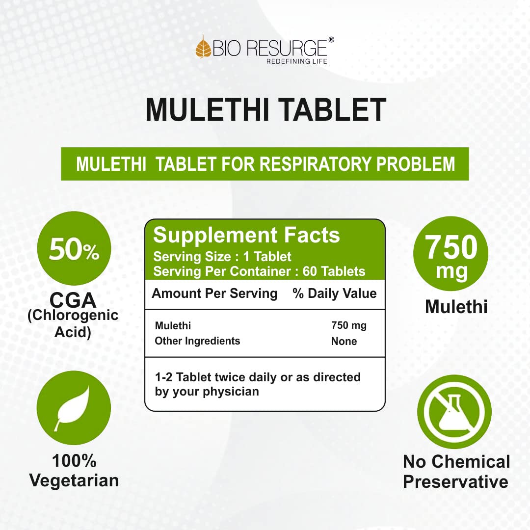 Bio Resurge Mulethi Herb Tablet | Respiratory and digestive disorder - 750 mg (60 Tablets)