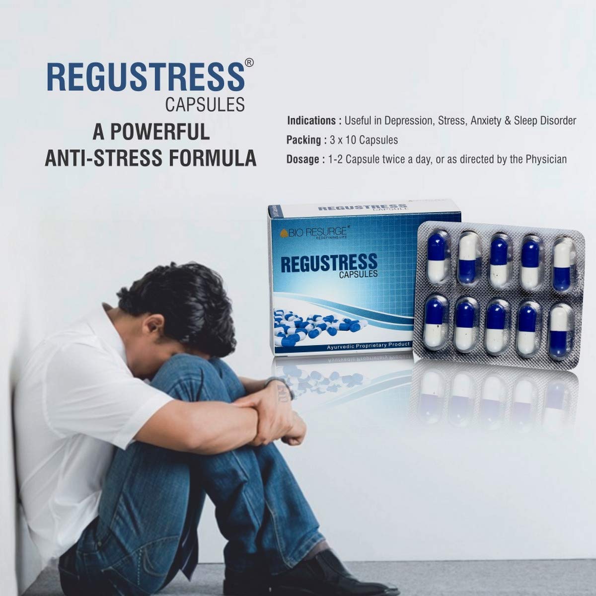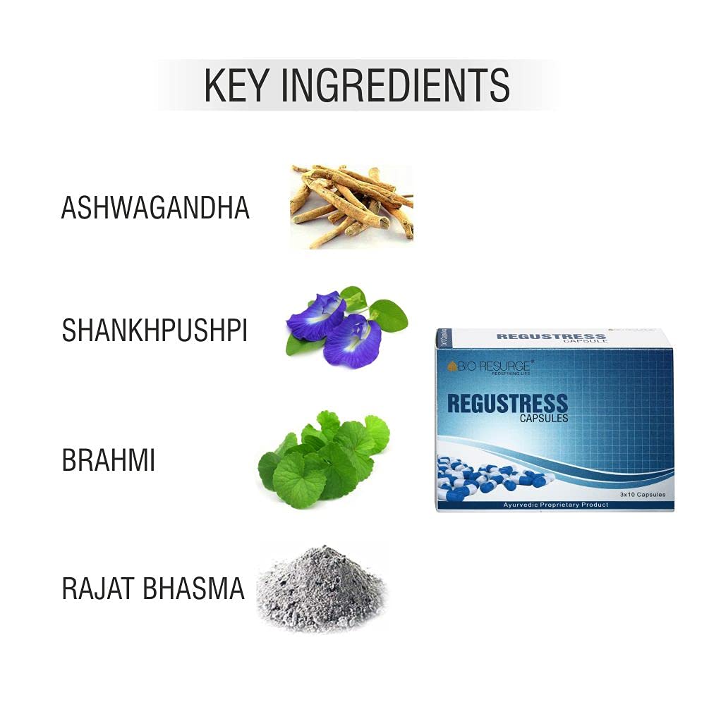 Bio Resurge Regustress â Ayurvedic Capsules for Stress & Anxiety Relief | Natural Mental Wellness Supplement (450 MG Pure Ayurveda Tablets