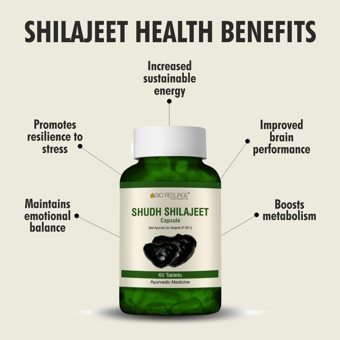 Bio Resurge Shilajit Capsule for Increase Stamina and vitality support for men | shilajeet capsules | approved by ministry of Ayush | 400 mg (60 tablets)