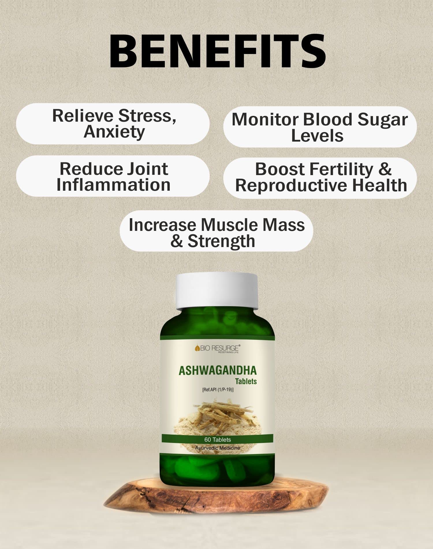 Bio Resurge Ashwagandha Tablets | Boost Strength Stamina & Energy | Rejuvenate Mind & body | Ministry of Ayush aproved - 750 mg (60 tablets)