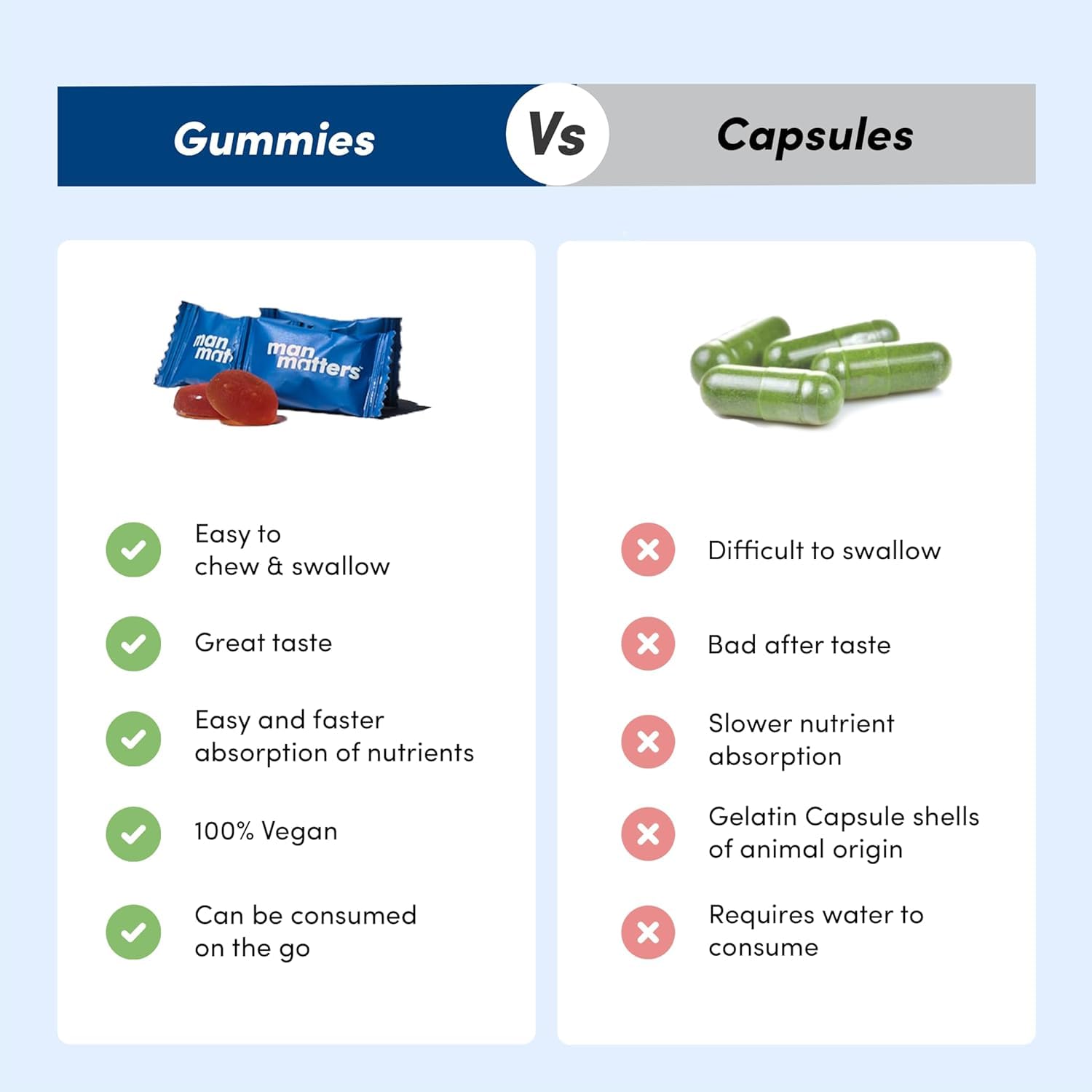 HomeHealth & PersonalDiet & NutritionHealth SupplementsMan Matters Biotin Hair Gummies (60N) | No Added Sugar | With Biotin DHT Blockers Vitamin A C E Fibre & Zinc | For Stronger and Healthier Hair | 100% Veg & Gut Friendly