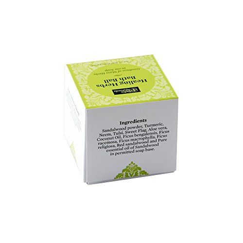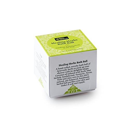 A hand-rolled novelty bath ball of Ayurvedic herbs to perk up your shower with its delightful shape. Coconut oil infused with herbs that include Sandalwood Turmeric Neem Tulsi and Aloe vera in this 100%natural pH-balanced handmade herbal ball purifies your skin and makes it soft and supple. Turmeric oil with its antiseptic property protects and shield the skin from infections. Neem oil with its antimicrobial effects protects and shield the skin from infections Sandalwood oil helps in exfoliating dirt-impurities and clogged pores. It brightens complexion lightens fine lines and rejuvenates skin cells for a soft and glowing skin. Aloe vera penetrates deep in the skin smoothens and promotes healing. Red sandalwood is rich in natural antioxidants that helps heals hyperpigmentation and lightens marks scars and dark spots . Nalpamara combination of bark of four Ficus species is promoted in Ayurveda as Skin Protector and Skin Illuminator .