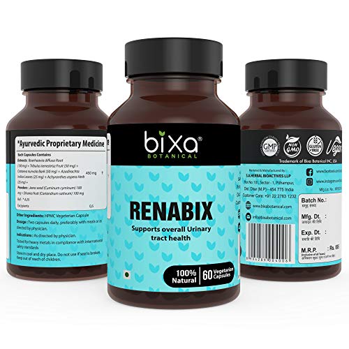 Bixa Botanical Renabix Capsules, Punarnava Extract Medicine for Urinary Problems | Kidney Health Capsules- 60 Veg Capsules (450mg)