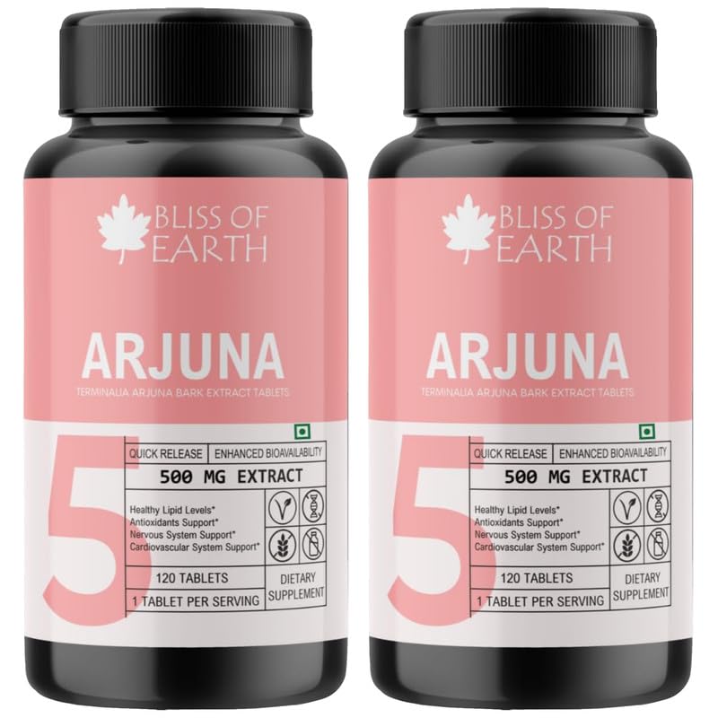 Bliss of Earth High Potency Terminalia Arjuna Bark Extract Tablets 500mg With Quick Release & Enhanced Bioavailability For Heart Health Arjun Chhal Tablets120 Tablet (Pack of 2)