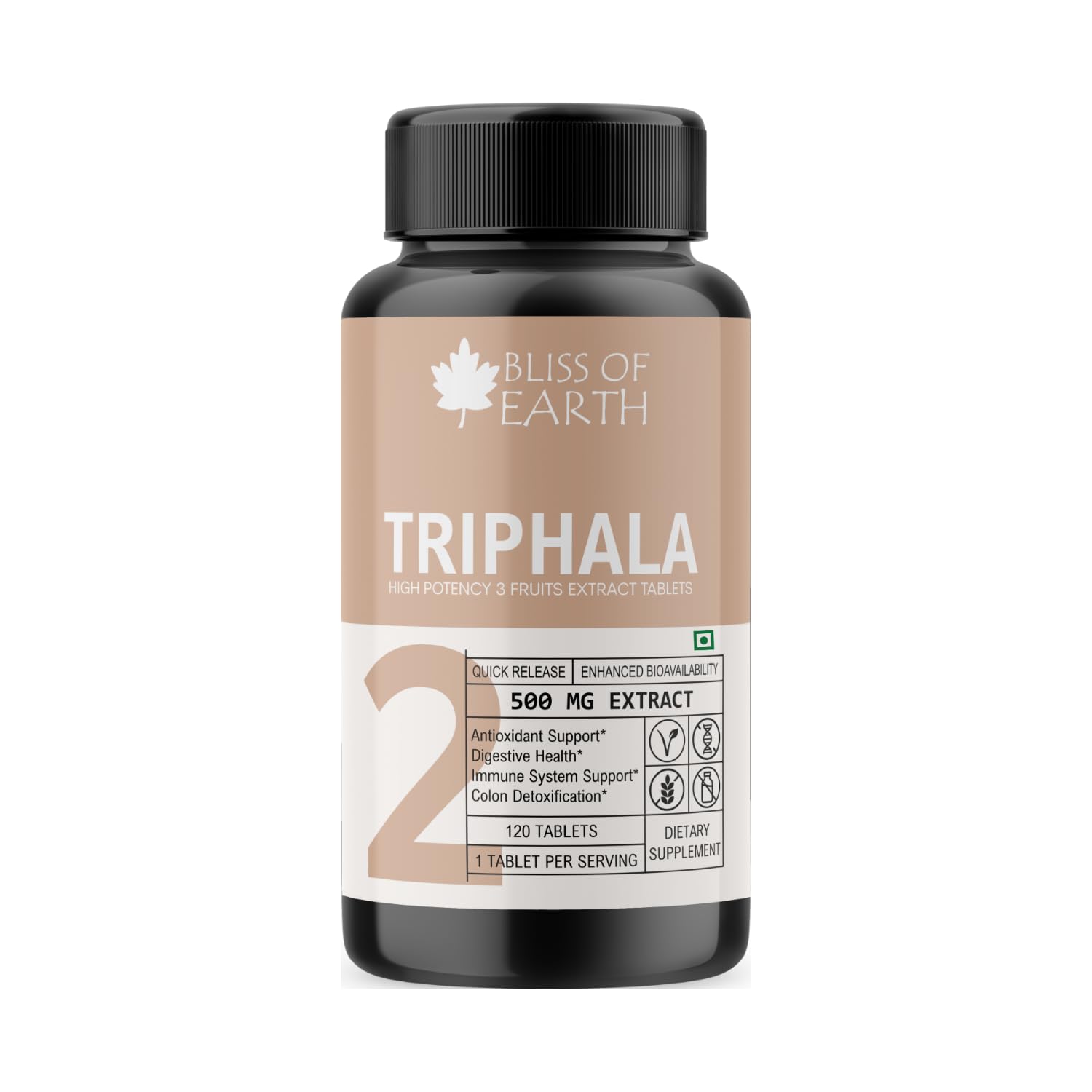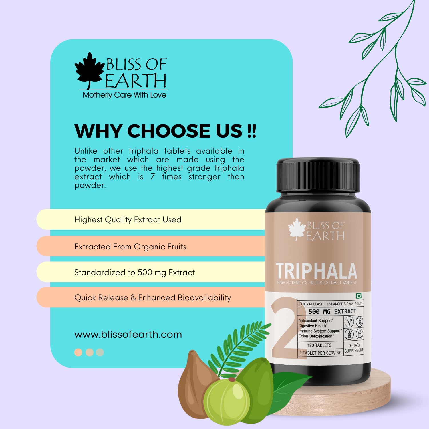 Bliss of Earth High Potency Triphala Extract Tablets 500mg With Quick Release & Enhanced Bioavailability Digestive Health & Constipation Relief Support 120 Tablets