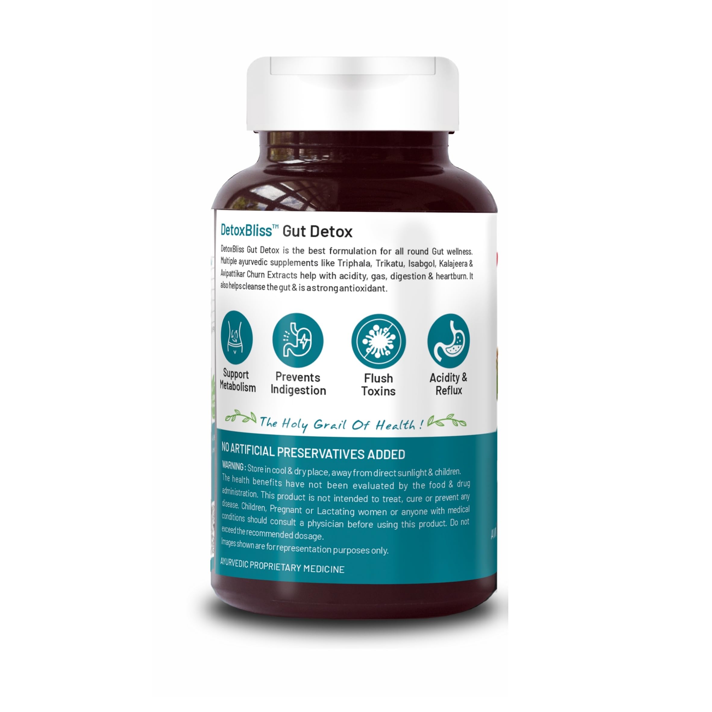 Bliss Wellness Gut Detox | Trikatu Isabgol Triphala Avipattikar Kalajeera | Supports Digestion Metabolism Toxin Removal Acidity & Gas Control for a Healthy Gut Cleanse 60 Veg Tablets