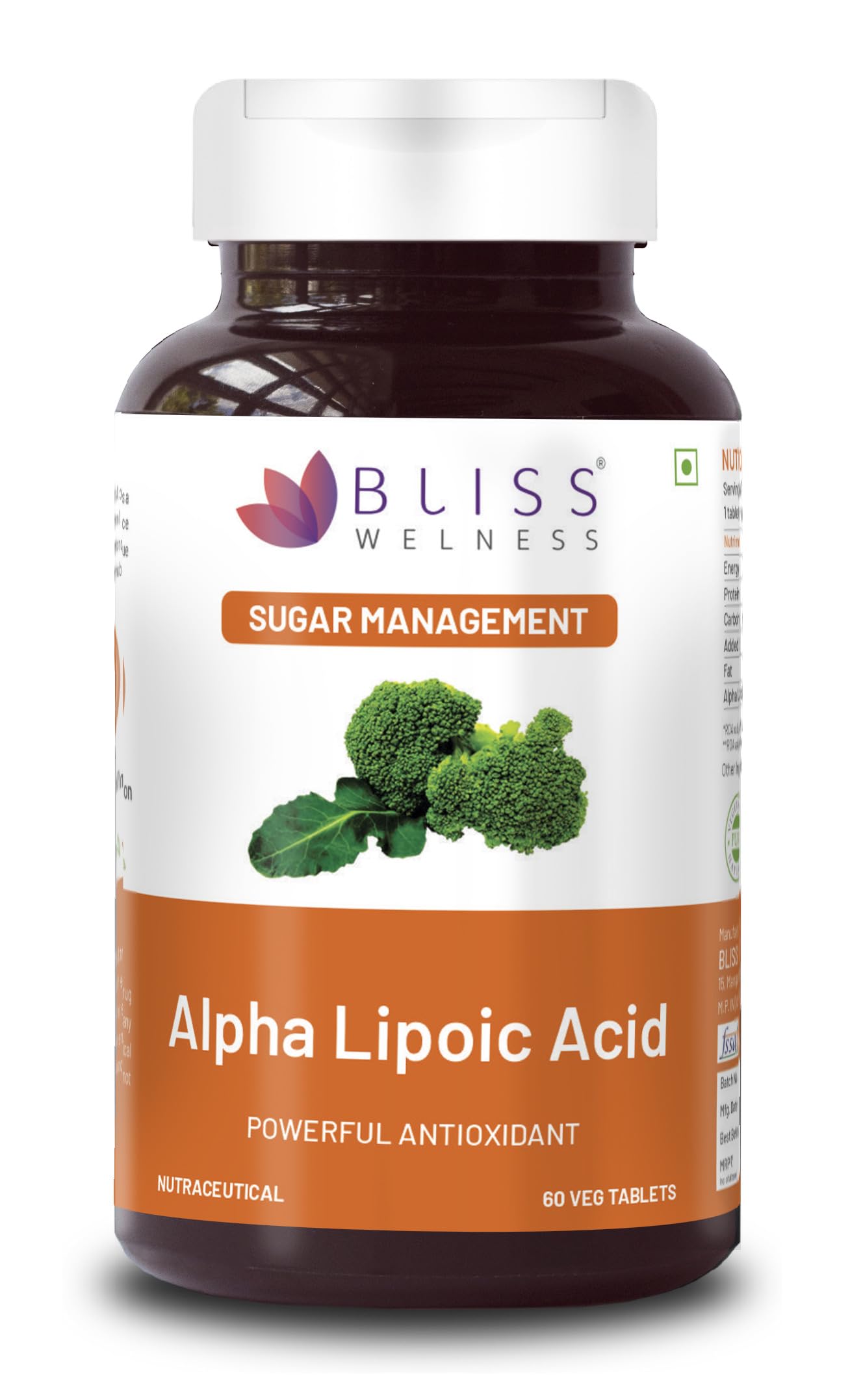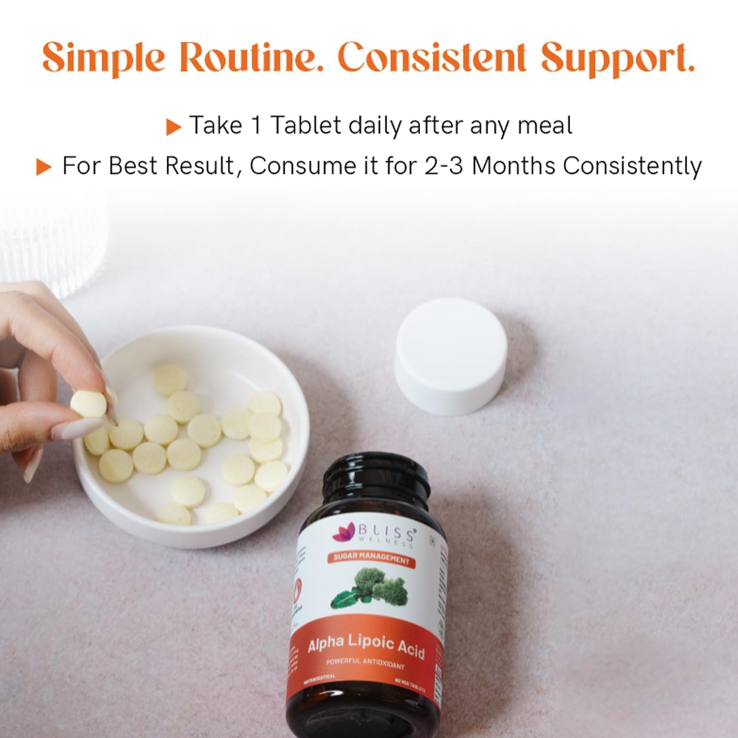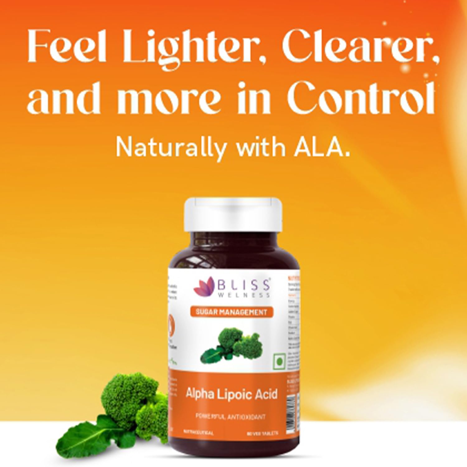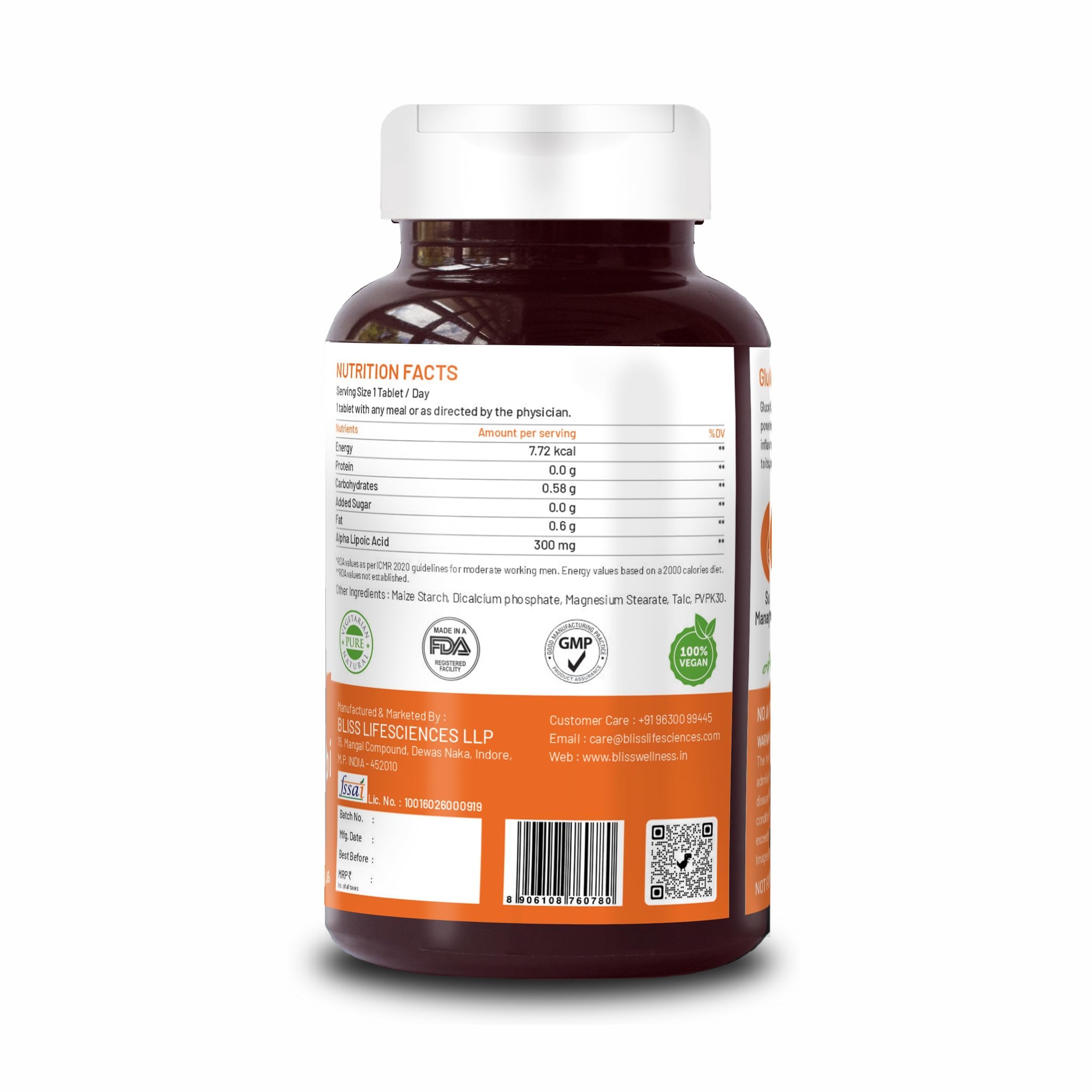 Bliss Welness Alpha Lipoic Acid 300mg | Natural ALA | Universal Antioxidant Liver Health Energy Booster Blood Sugar Management Supplement - 60 Vegetarian Tablets