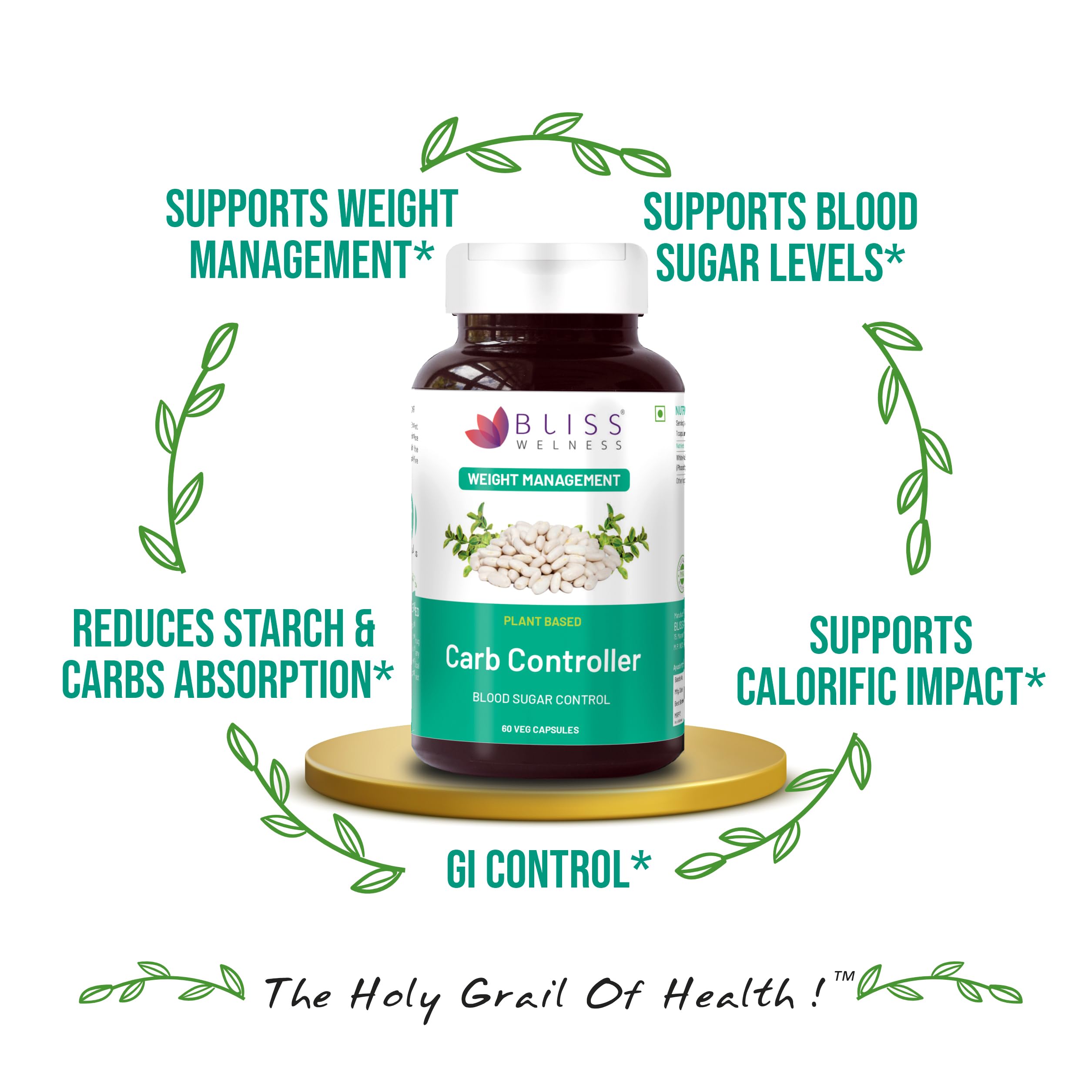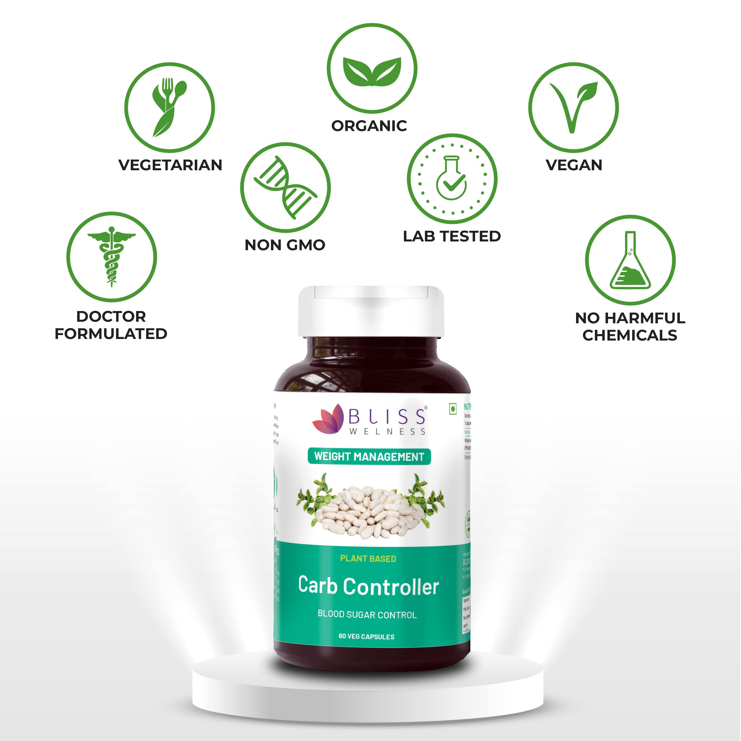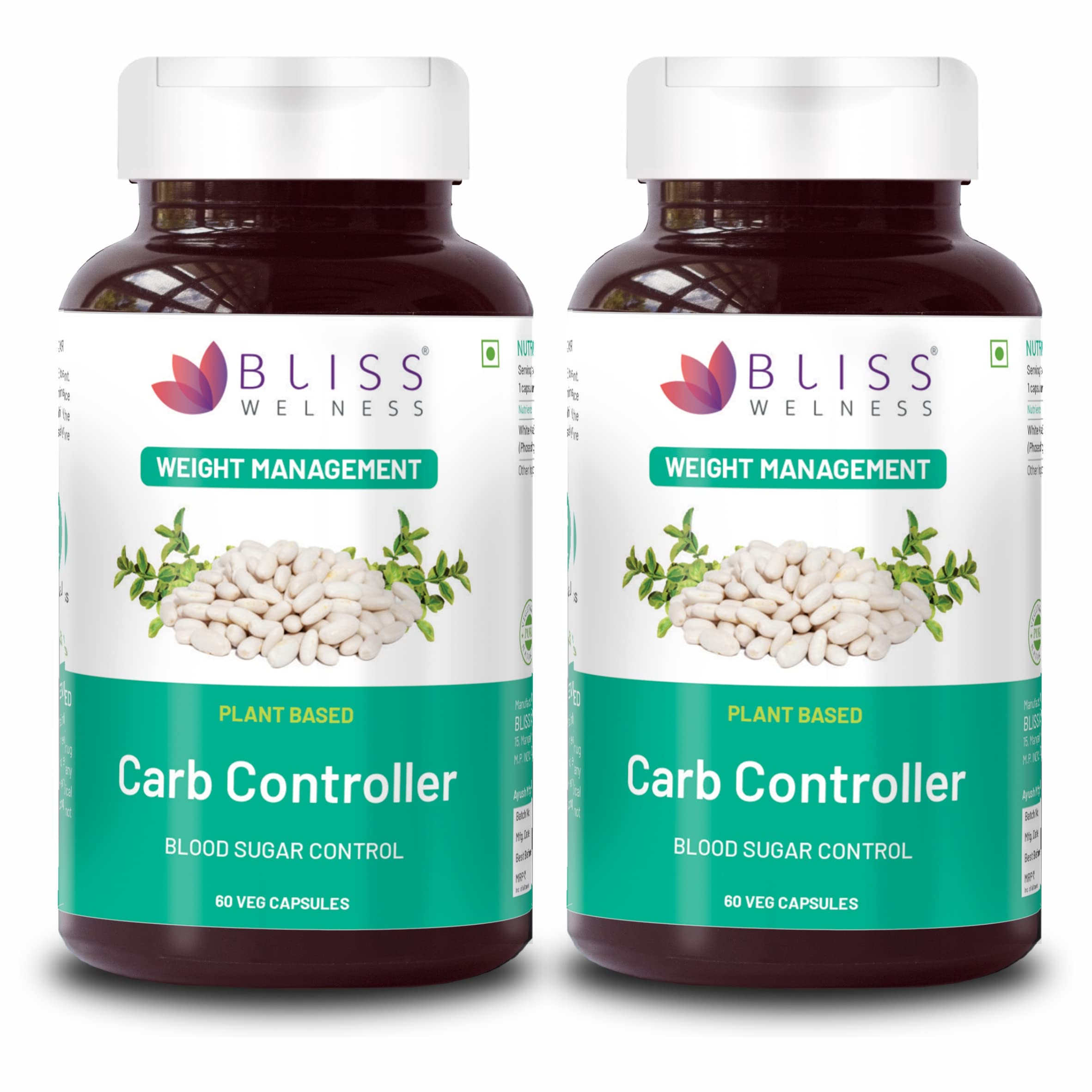 Bliss Welness Carb Blocker Inhibitor | Premium White Kidney Bean Extract | Carbohydrate Control Weight & Sugar Management Supplement (Pack Of 2)