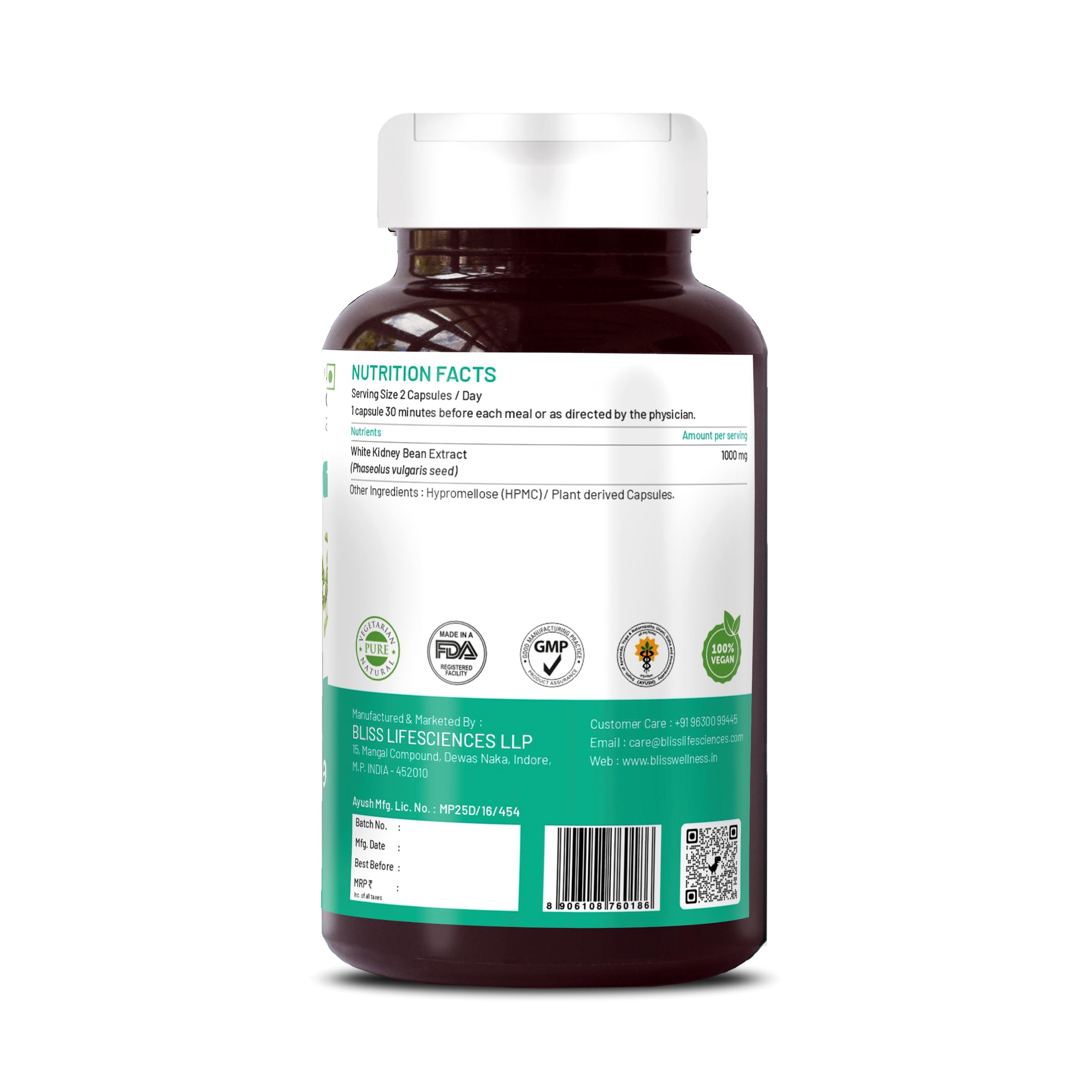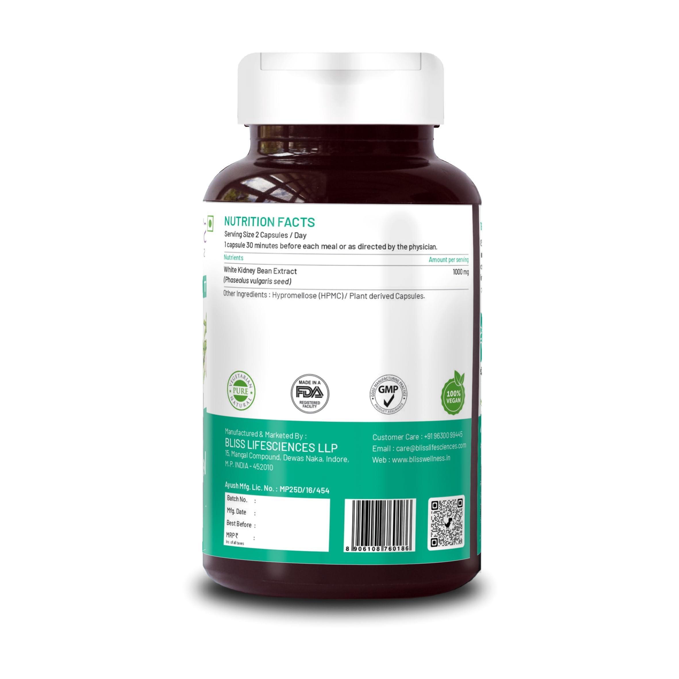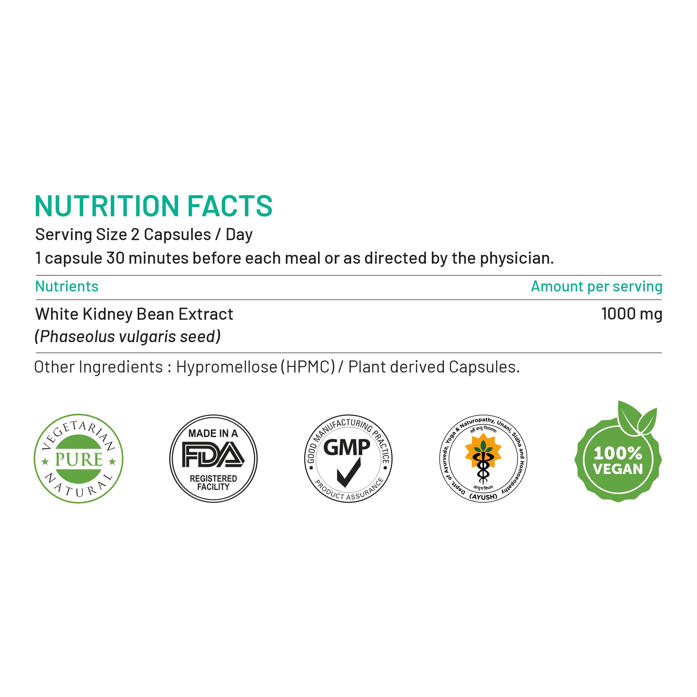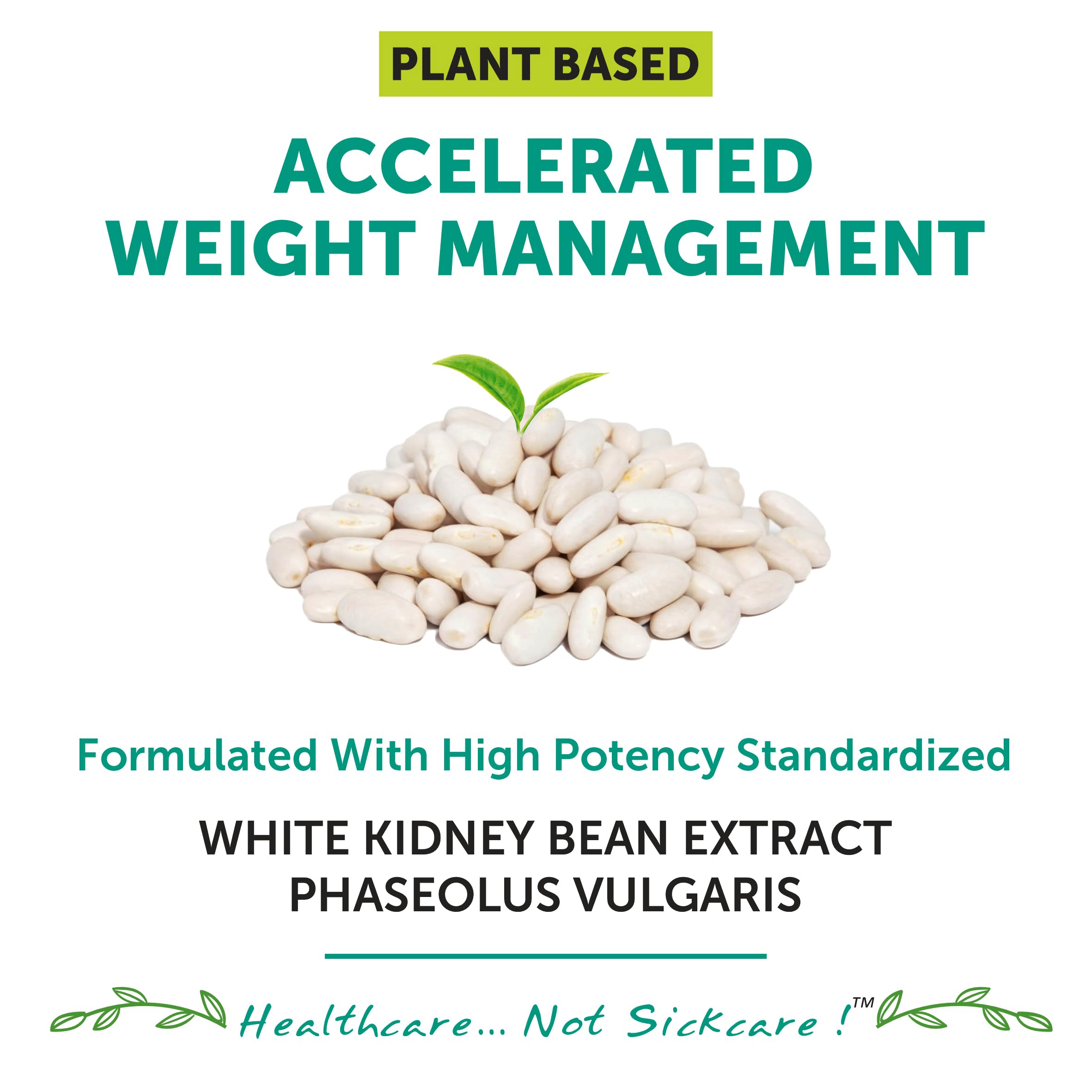 NATURAL CARB & STARCH INHIBITION : It is a standardized extract of White Kidney Bean Extract that works on inhibiting the conversion of Complex Carbs and Starches in the body to effectively Manage Weight.