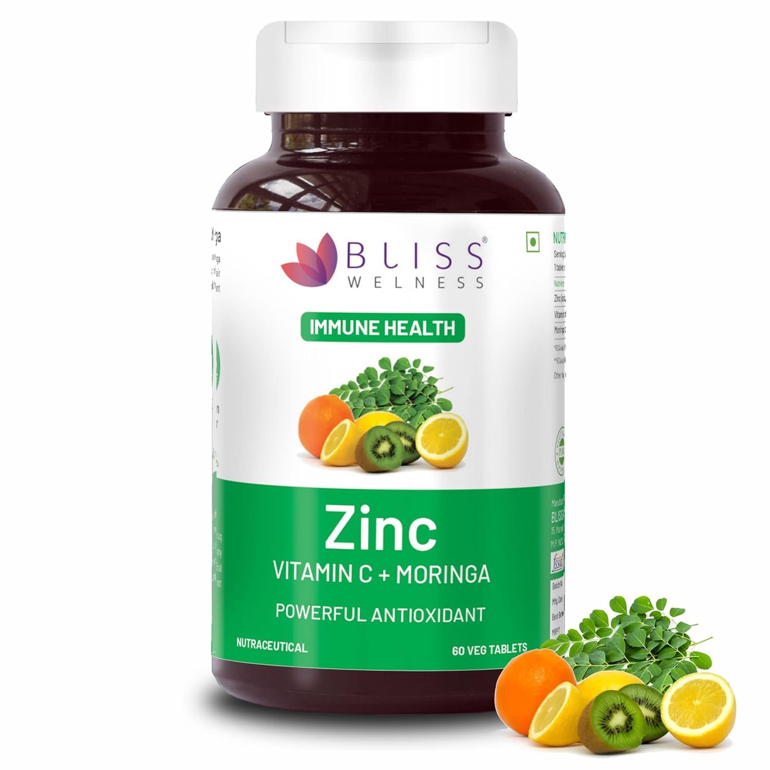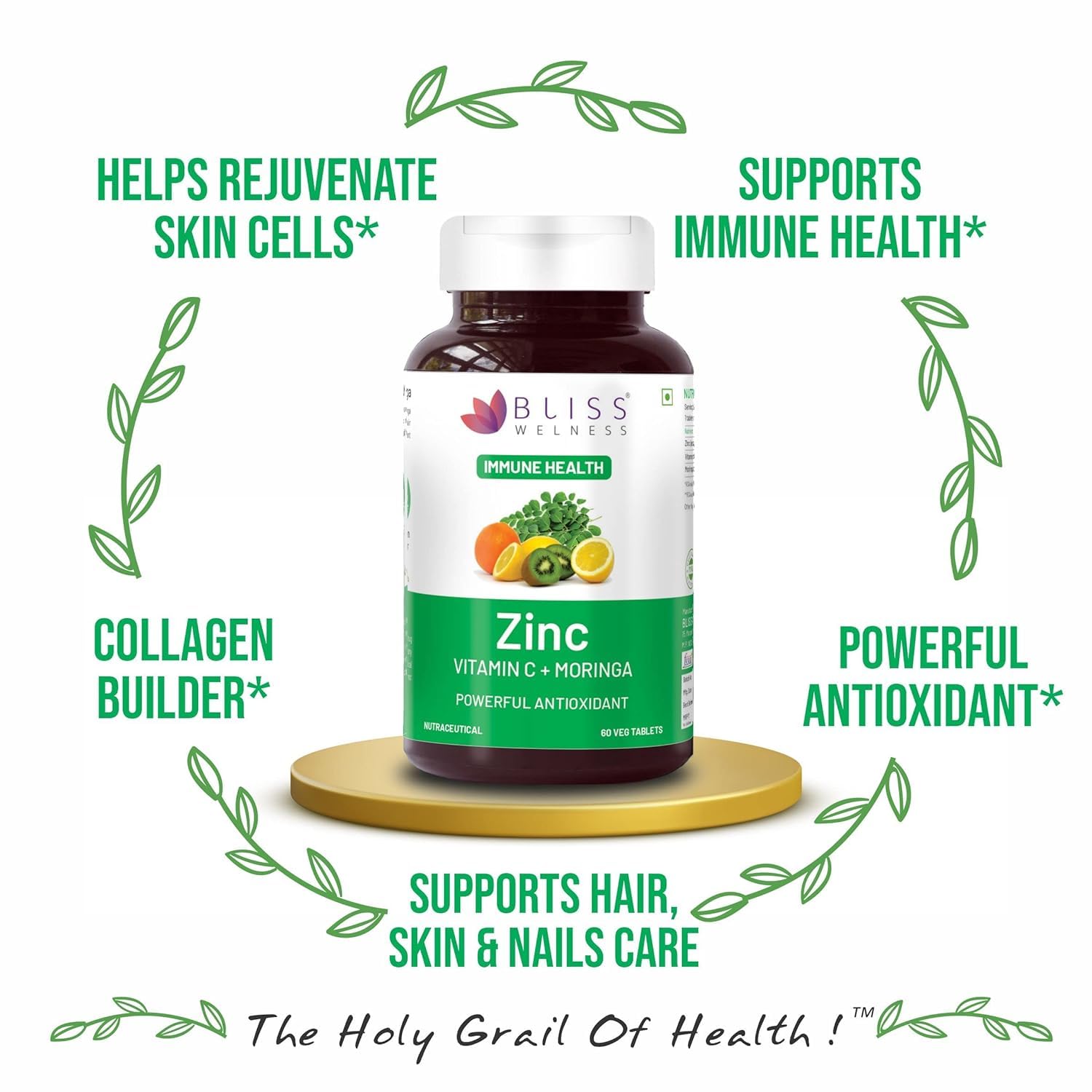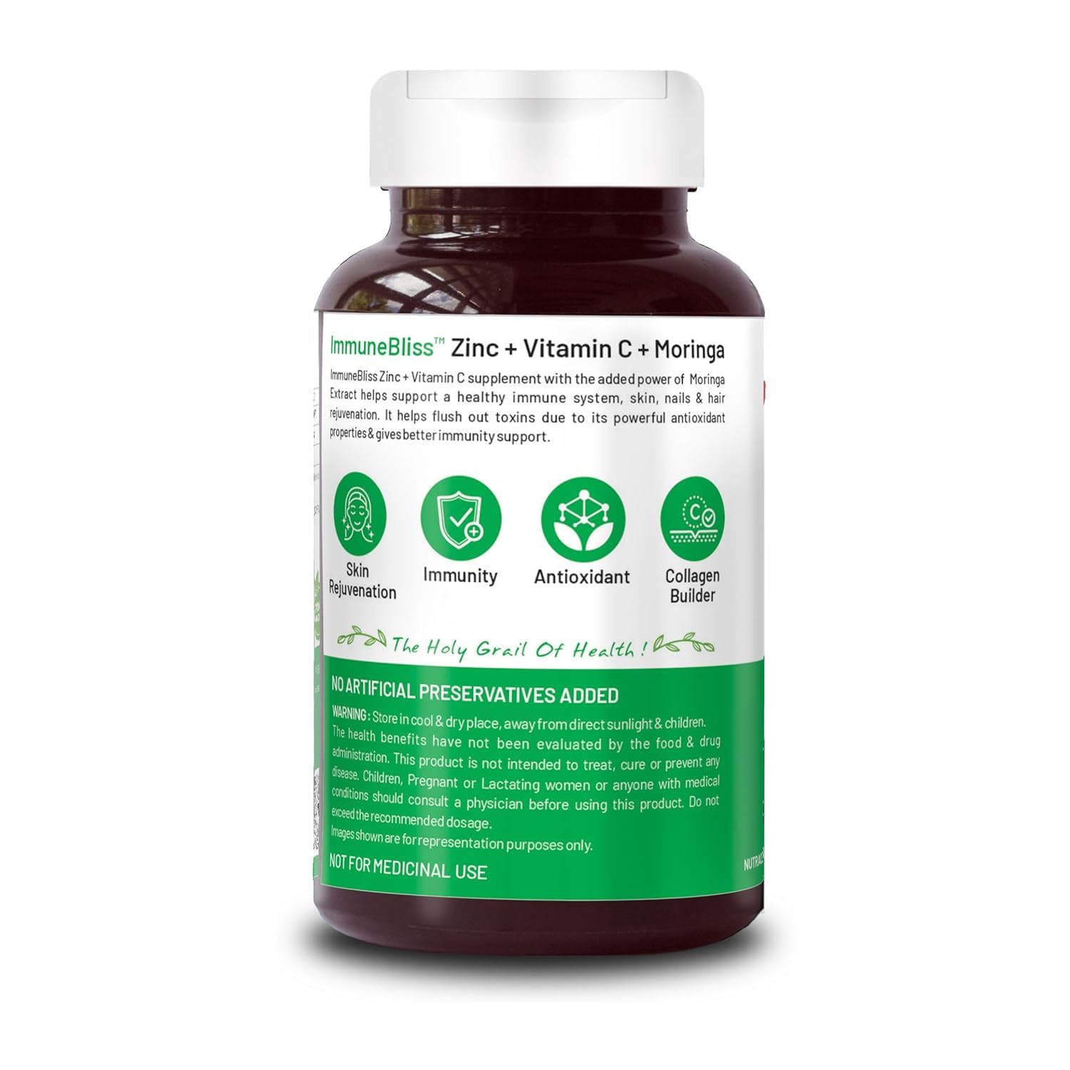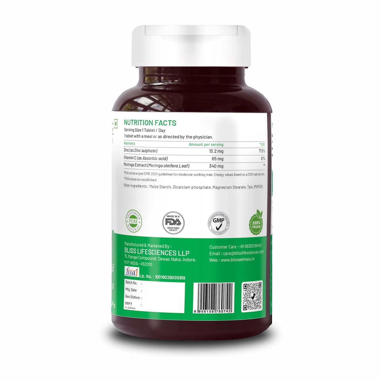 Bliss Welness Immunity Booster Skin Glow | Vitamin C + Zinc Citrate + Moringa Extract | Immune Boost Antioxidant Supplement - 60 Veg Tablets
