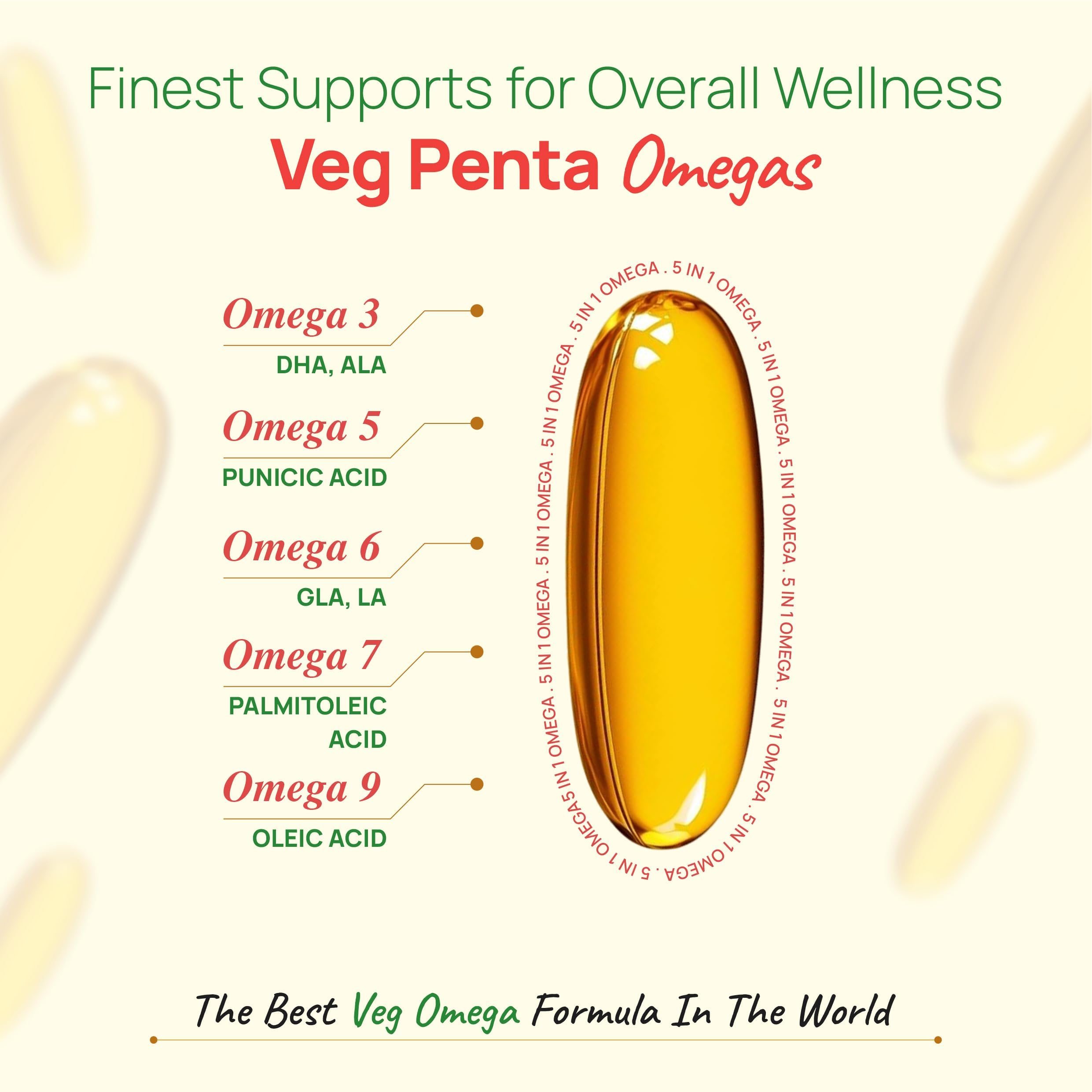 Bliss Welness Penta Omega | 3 5 6 7 9 Fatty Acids Blend with Natural Antioxidants | Advanced Formula for Heart Brain Skin Joints & Metabolism | 60 Vegetarian Softgels