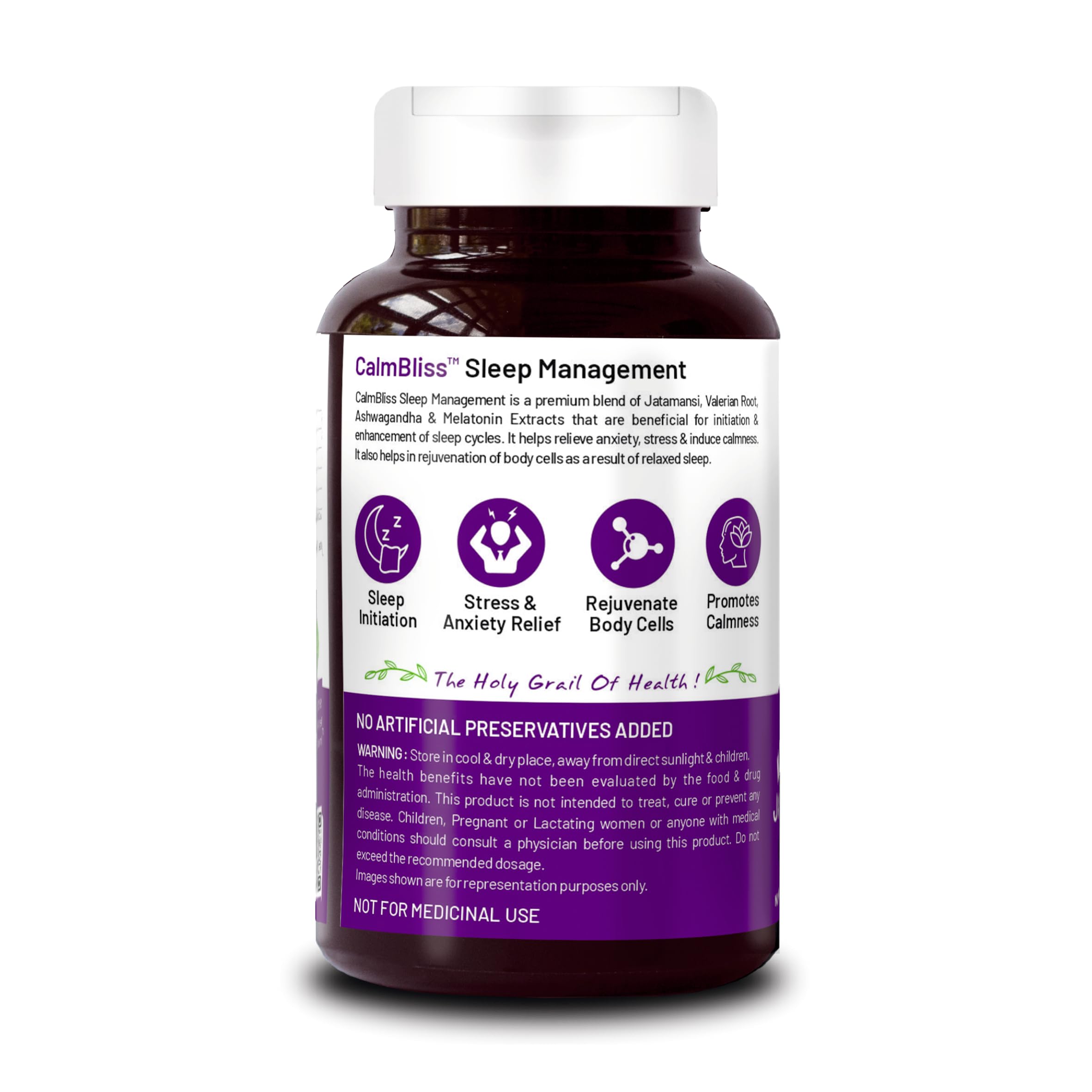 Bliss Welness âCalm Blissâ is completely DRUG FREE. It relies primarily on pure herbs to optimize sleep so you arenât running the risk of building up a harmful habit or dependency on prescription sleeping pills.