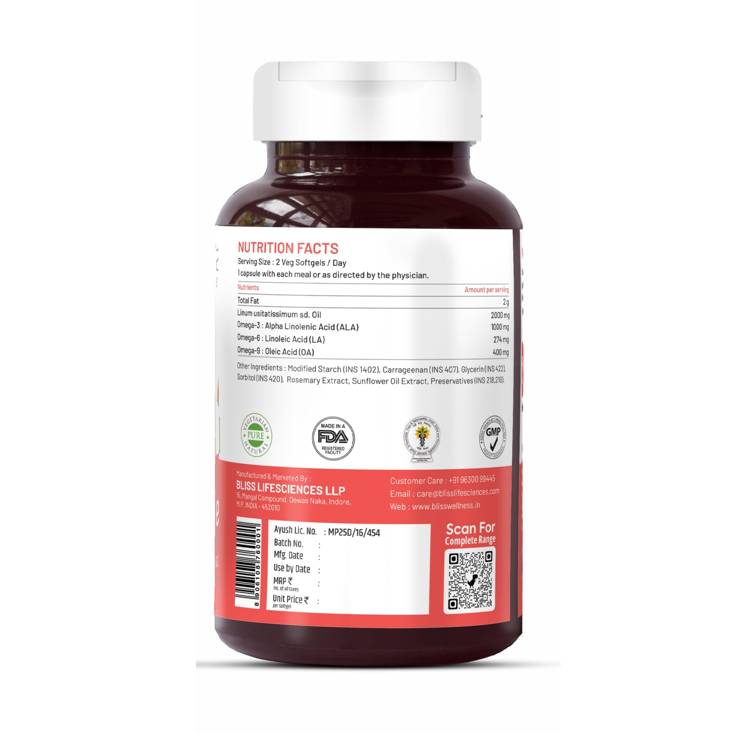 HIGH POTENCY - Bliss Welness Omega3 6 9 capsules/tablets is formulated from the most concentrated sources of Veg Omega-3 Fatty Acids for maximum efficacy and effectiveness with highest 1000MG Omega 369 oils per serve.