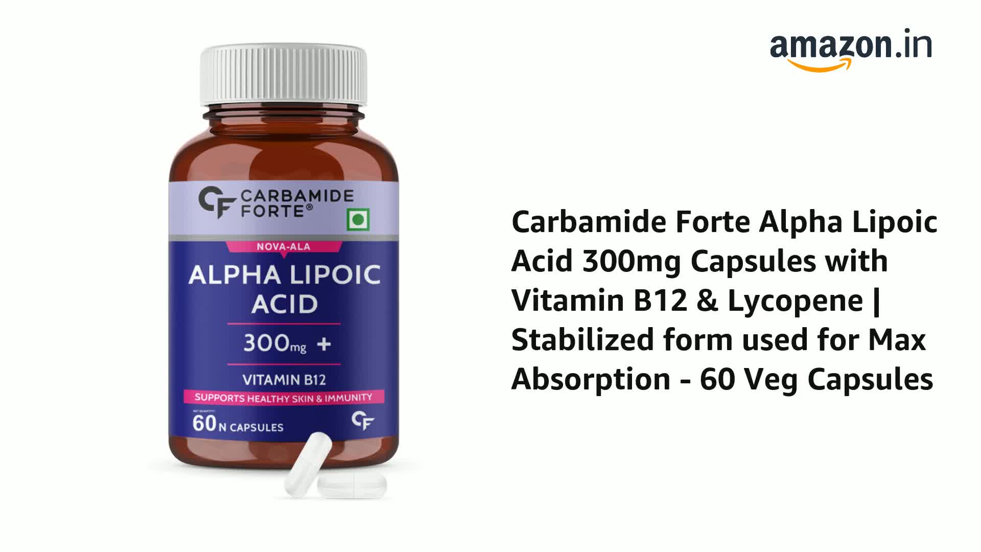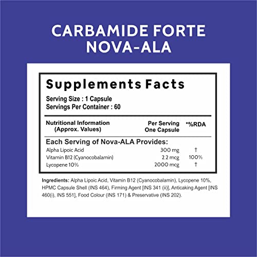 Carbamide Forte Alpha Lipoic Acid 300mg Capsules with Vitamin B12 & Lycopene | Stabilized form used for Max Absorption - 60 Veg Capsules
