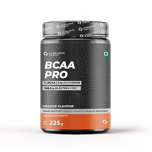 HomeHealth & PersonalDiet & NutritionHealth SupplementsCarbamide Forte BCAA PRO Supplement for Men & Women 15g Serving with L-Glutamine & L-Citrulline|Max Strength BCAA Powder with 1168.5mg Electrolyte Blend & Vitamin B6 Supplement - Orange Flavour -225g