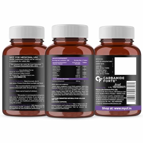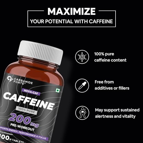 Carbamide Forte Caffeine Tablets | Pre Workout For Men & Women | 200mg Caffeine Pills | Gym Supplement for Men and Women | 100 Veg Tablets For Pre Workout