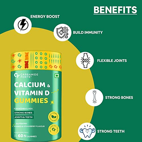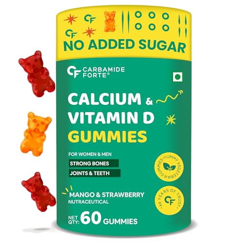 HomeHealth & PersonalDiet & NutritionHealth SupplementsCarbamide Forte Calcium with Vitamin D Gummies for Men & Women| Calcium Gummies for Women & Men for Stronger Bones, Joints & Teeth & Immunity - Mango & Strawberry Flavour - 60 Veg Gummies