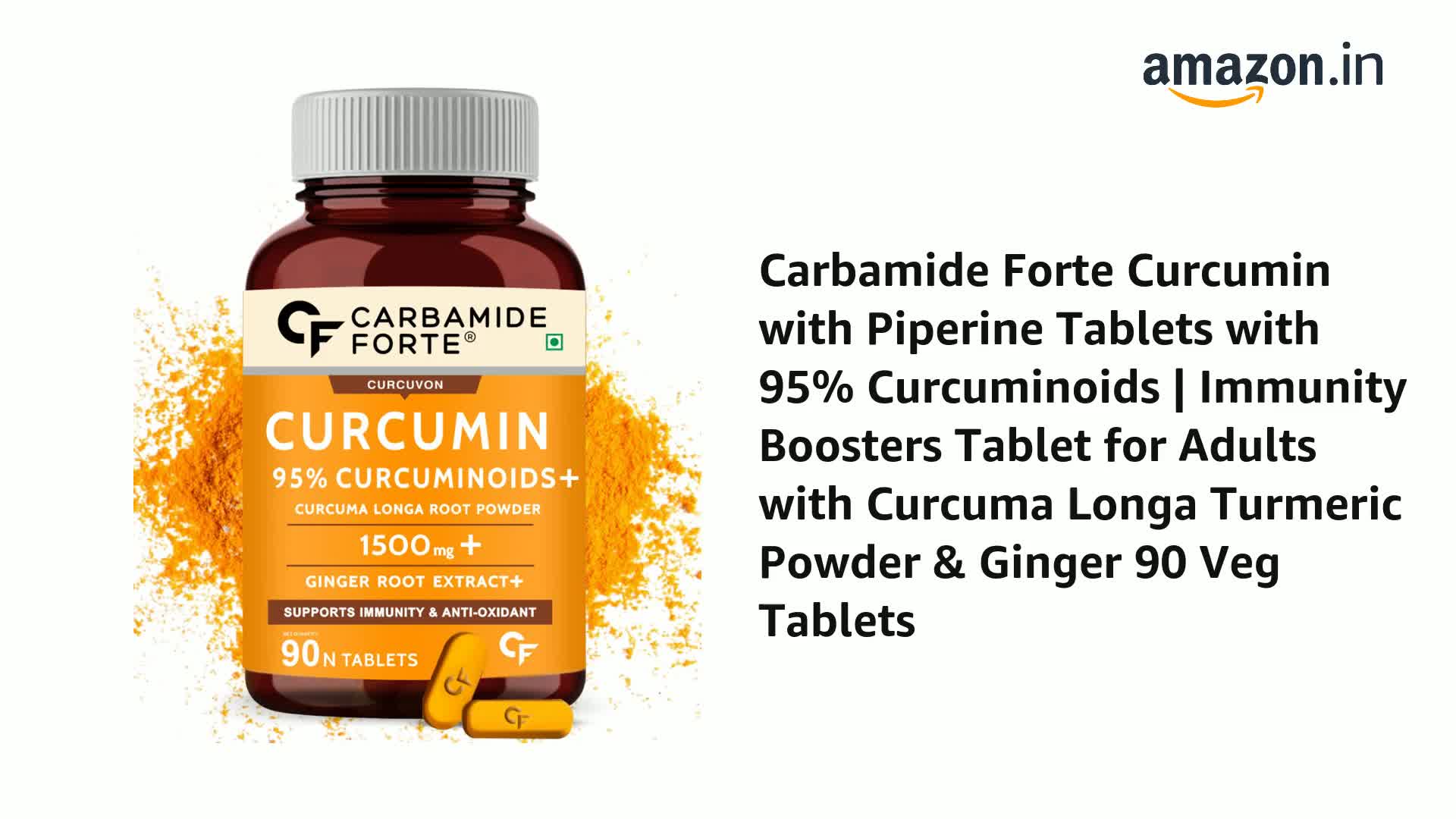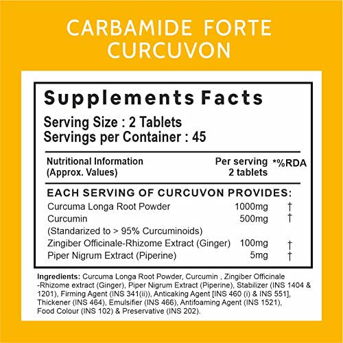 Carbamide Forte Curcumin with Piperine Tablets with 95% Curcuminoids | Immunity Boosters Tablet for Adults with Curcuma Longa Turmeric Powder & Ginger 90 Veg Tablets