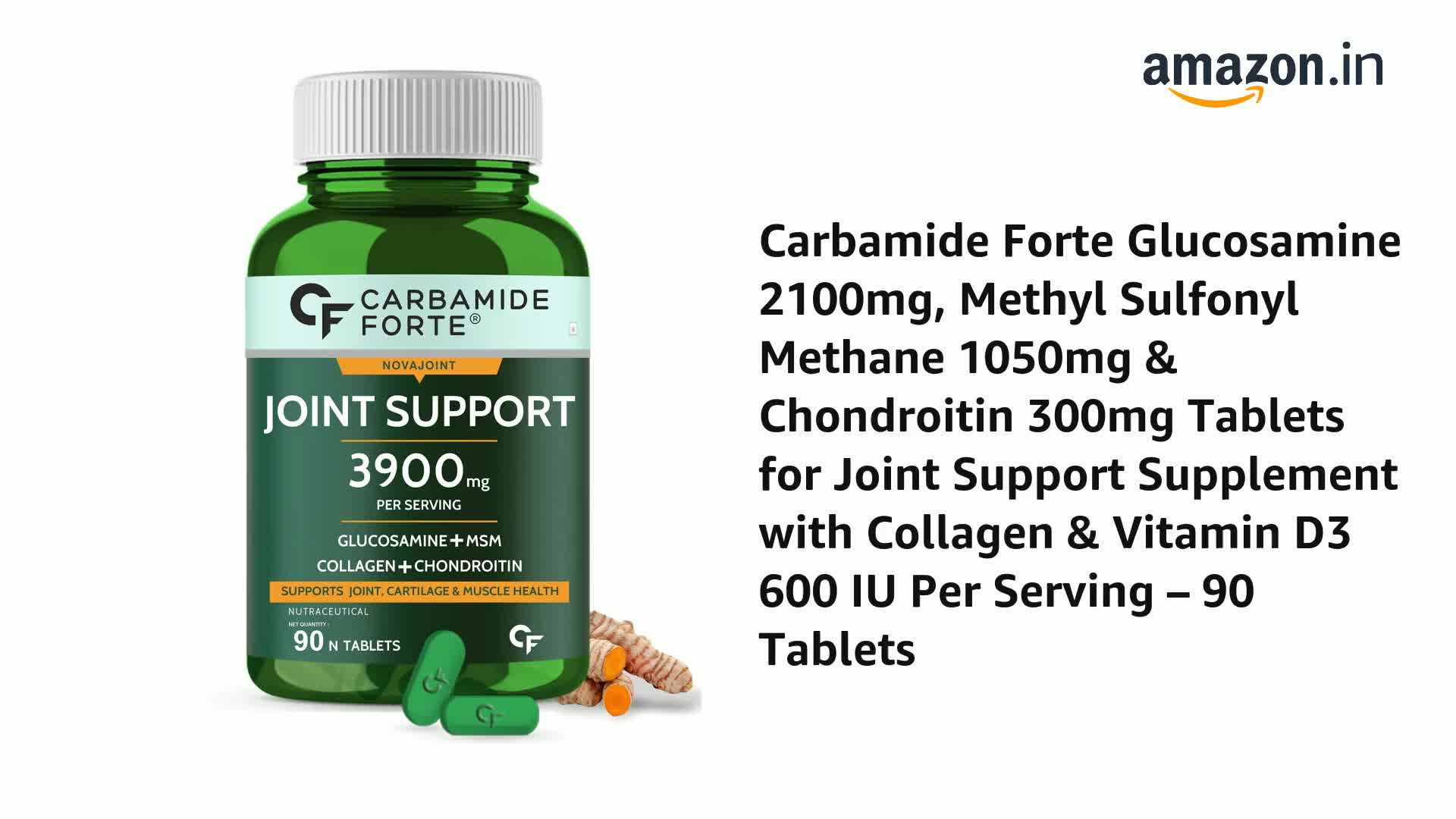 Carbamide Forte Glucosamine Tablets - Joint Support Supplement with Collagen & Glucosamine Chondroitin MSM | Joint Cartilage Support & Muscle Health | Joint Pain Tablets - 90 Tablets