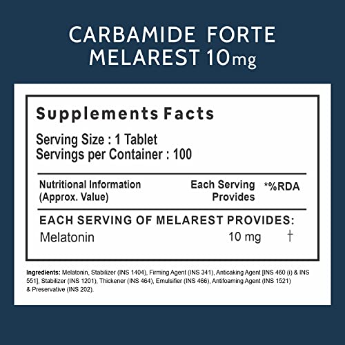 Carbamide Forte Melatonin 10 mg Pills | Sleep Supplement for Better Sleep | Melatonin Tablet for Restful Deep Sleep - 100 Veg Tablets