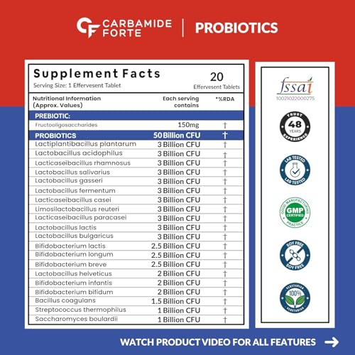HomeHealth & PersonalDiet & NutritionHealth SupplementsCarbamide Forte Probiotics Supplement | Gut Health Supplements with Limosilactobacillus reuteri | Probiotics supplement for gut health | Digestive Enzymes 20 Effervescent Tablets