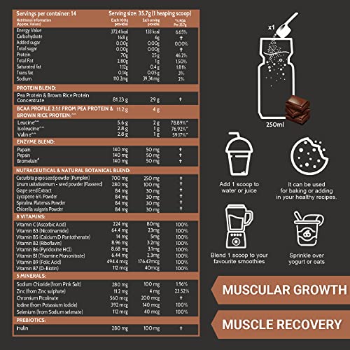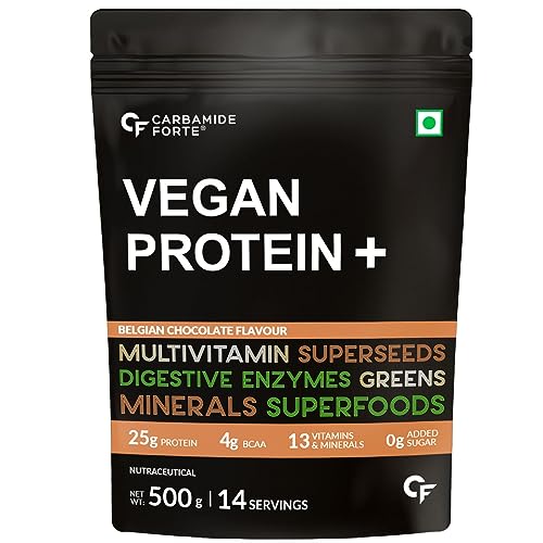Carbamide Forte Vegan Protein Powder - Plant Based Pea Protein Powder with Multivitamin Minerals Superfoods Digestive Enzymes - Belgian Chocolate Flavour - 500g
