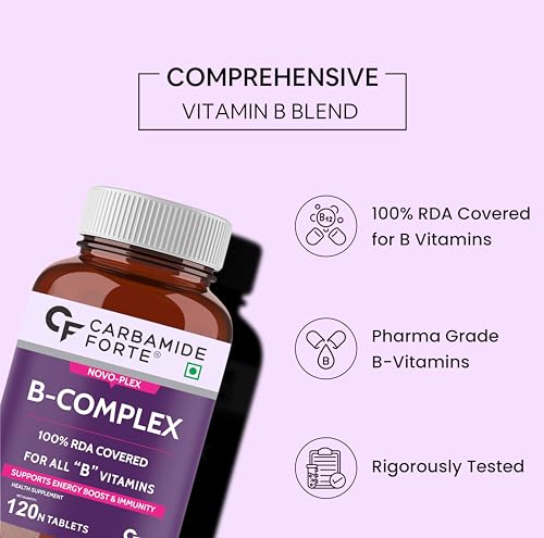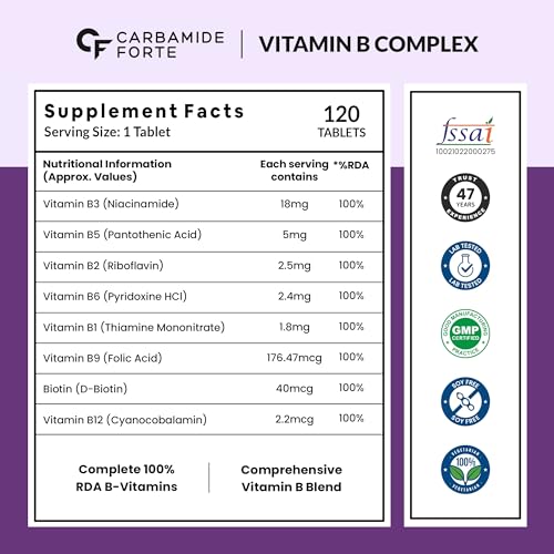 HomeHealth & PersonalDiet & NutritionHealth SupplementsCarbamide Forte Vitamin B-Complex Tablets - 100% RDA for B Vitamins with B1, B2, B3, B5, B6, B9 & Vitamin B12 | Vitamin B Complex Supplements for Women & Men - 120 Vegetarian Tablets (Pack of 2)
