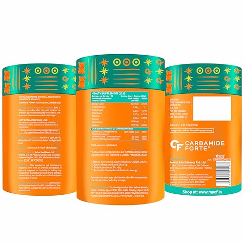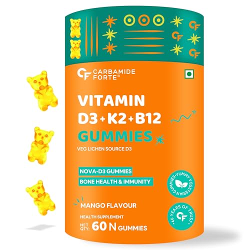 Carbamide Forte Vitamin D3 K2 MK7 & Vitamin B12 Gummies | Vitamin B12 supplements | vitamin K2 mk7, Vitamin D3 supplement & b12 vitamin for Women, Men & Kids | Mango Flavoured - 60 Veg Gummies