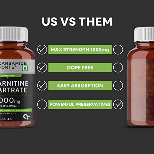 CF Carbamide Forte L Carnitine Supplement 1000mg Capsules for Men & Women | Pre Workout Supplement - 60 Veg Capsules